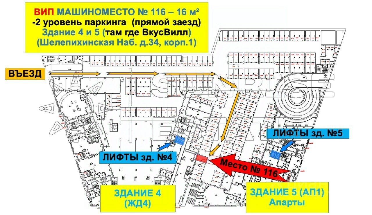 Продается ВИП машиноместо 116 расположенное на -2 уровне паркинга под зданием 4 и 5.