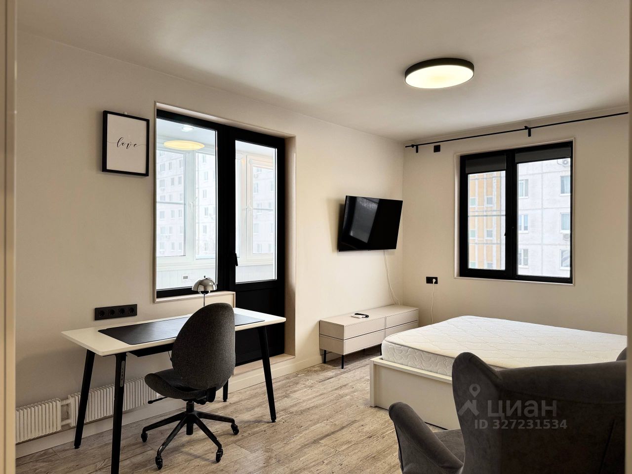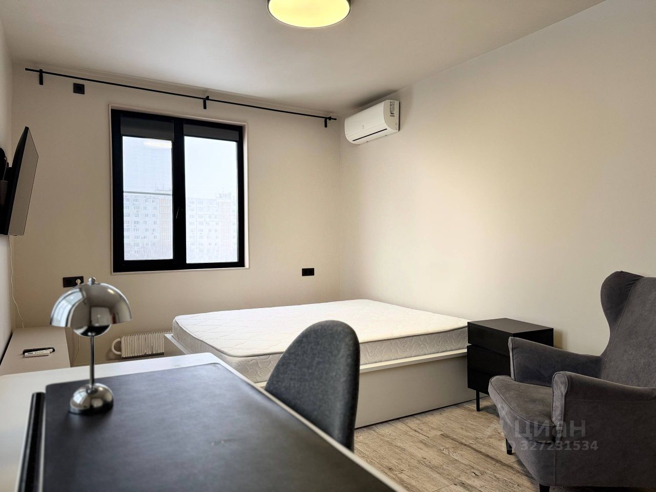 Мебель и техника: В коридоре: гардероб с вешалкой и полками В комнате: двуспальная кровать, кондиционер, письменный стол, тумба с телевизором, трехстворчатый шкаф Из комнаты выход в лоджию с тёплыми полами и летним спальным местом На кухне установлены стиральная и посудомоечная машины