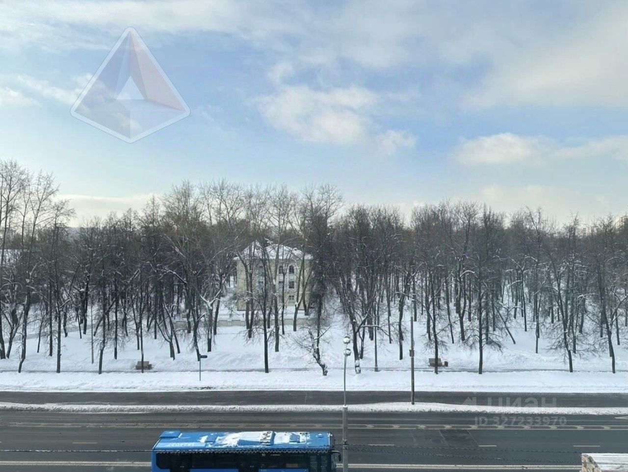 Квартира с ремонтом от застройщика (светлобежевый ламинат, белые виниловые обои, на кухне — плитка, в коридоре — тёплый пол). Окна выходят на запад, с видом на парк.