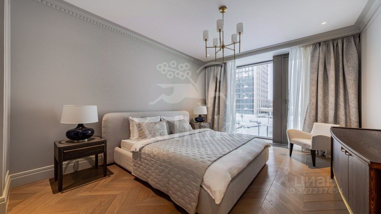 О квартире: - 135,1 м на 2-м этаже, корпус 7. Окна на две стороны света. Главная ''сцена'' - умиротворяющий вид в сад Victory Garden, а фон - открытые панорамы на Парк Победы и Поклонную гору. - Готовая отделка в стиле ''неоклассика'' с инженерными решениями премиум-класса.