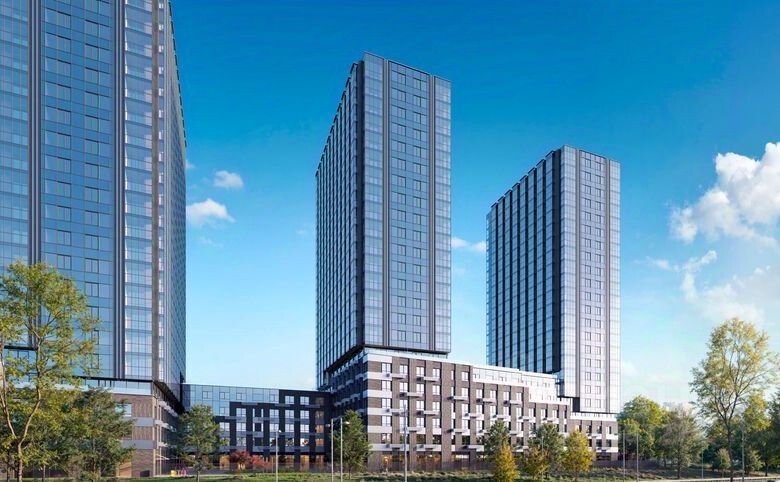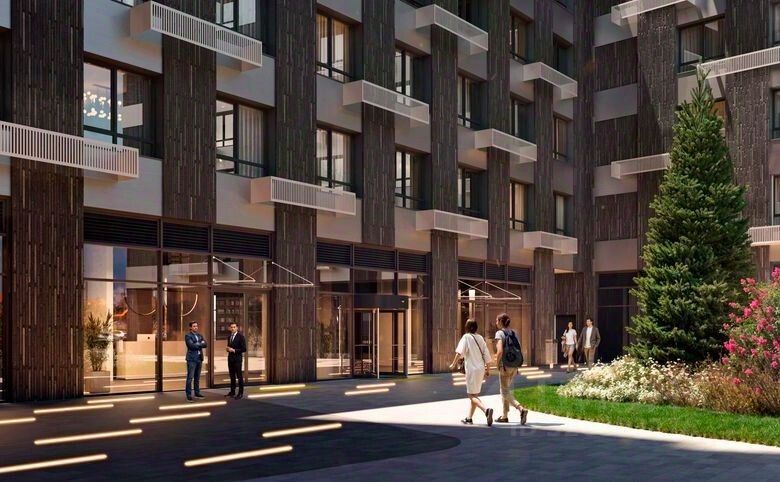 Код объекта: 2037254. Продается студия 24 кв.метра в комплексе апартаментов, который состоит из четырех башен высотой 23 этажа, соединенных между собой стилобатом на 5-6 этажей. В корпусах 1 и 2 расположены апартаменты для постоянного проживания, а корпуса 3 и 4 представляют собой 4-звездочный апарт-отель, управляемый профессиональным гостиничным оператором. Архитектурная концепция проекта была разработана бюро АПЕКС. Фасады зданий оформлены в сочетании прозрачного стекла, фактурной клинкерной плитки и серебристых металлических панелей. Фасады украшены удлиненными перекрестными арт-корзинами для кондиционеров и вазонами с цветами. На стилобате создана эксплуатируемая кровля с зелеными террасами. В лобби предусмотрены зона для гостей и место для хранения колясок.