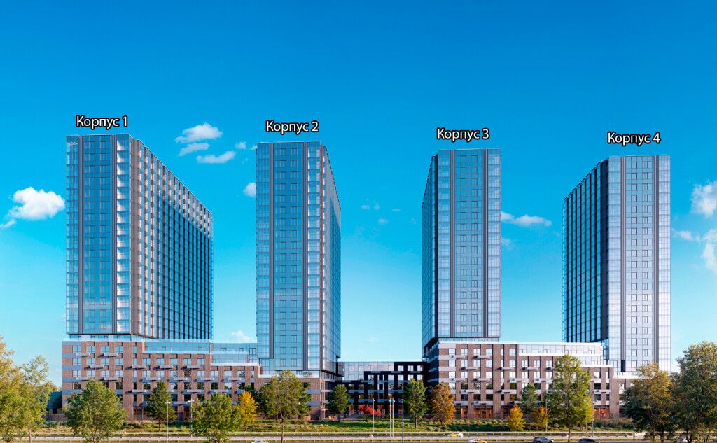 В корпусах 1 и 2 предлагаются апартаменты для постоянного проживания - от компактных студий до просторных двух- и трехкомнатных планировок европейского формата. Апартаменты сдаются с отделкой White box и панорамным остеклением. Есть видовые апартаменты, из некоторых предусмотрен выход на благоустроенную крышу.