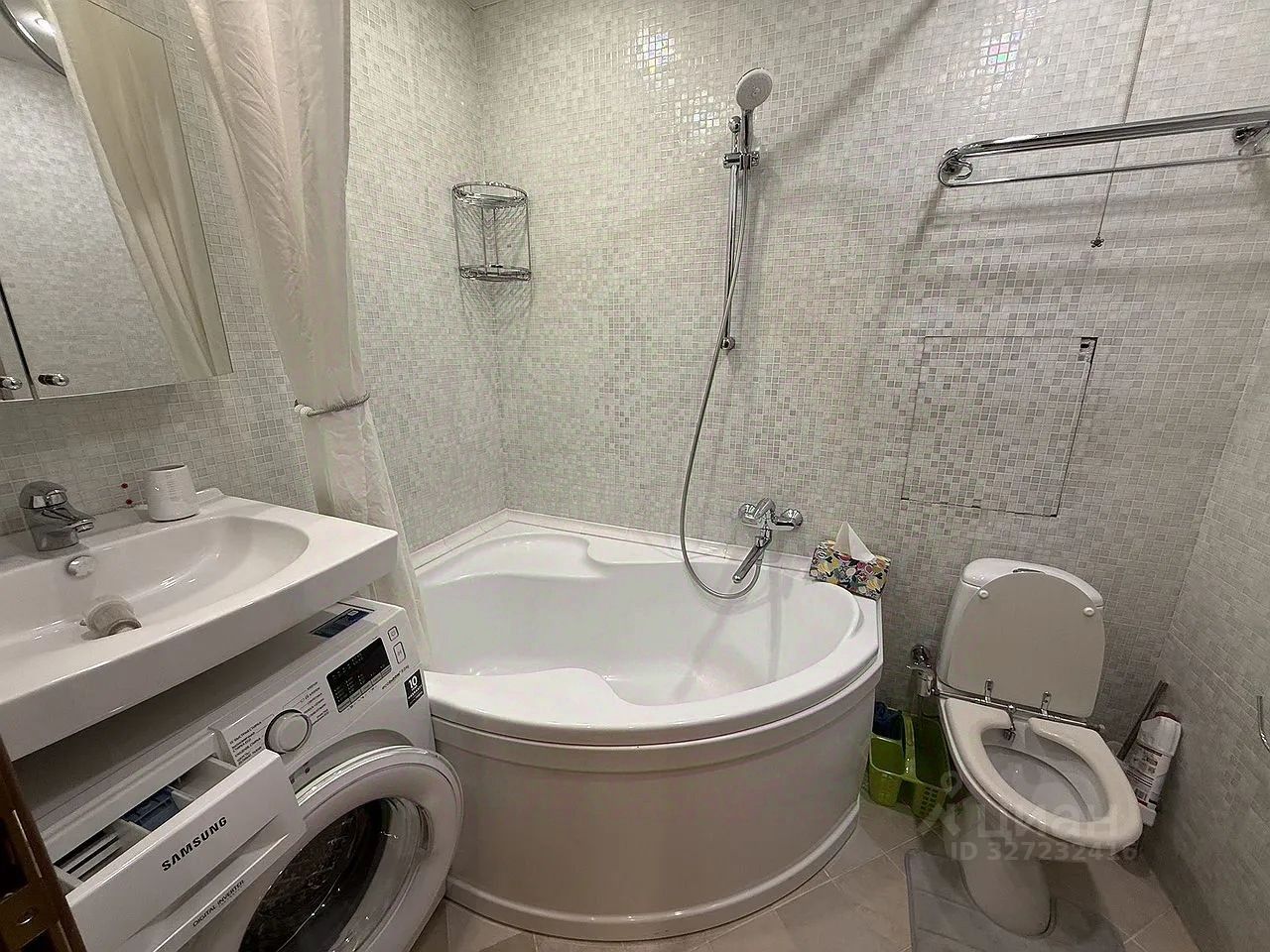 В квартире имеется следующая техника для проживания : газовая плита с 4-мя конфорками, домофон с камерой,микроволновая печь, кондиционер, холодильник и стиральная машина. Санузел совмещён. В комнате просторная кровать, вместительные большие шкафы при входе и в комнате. Окна стеклопакеты, балкон остеклён и выходит в тихий двор.