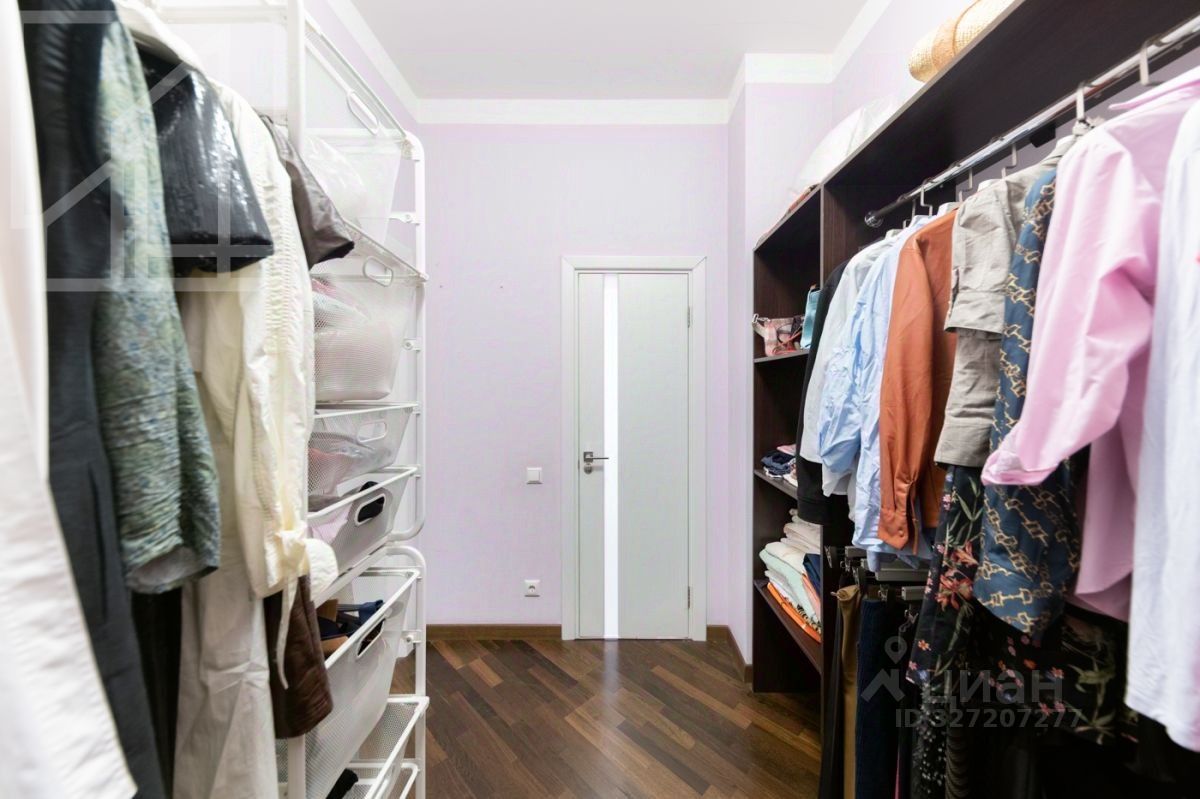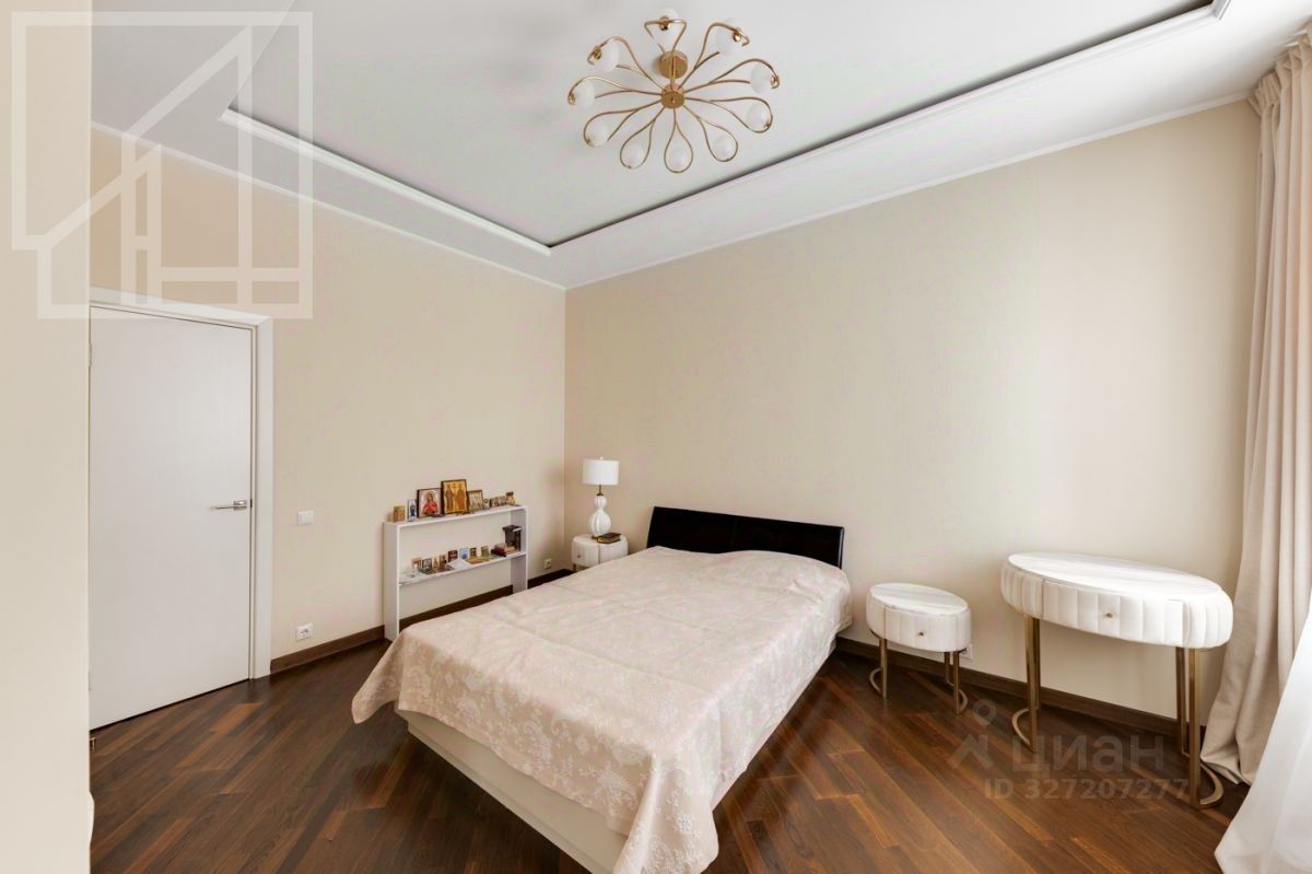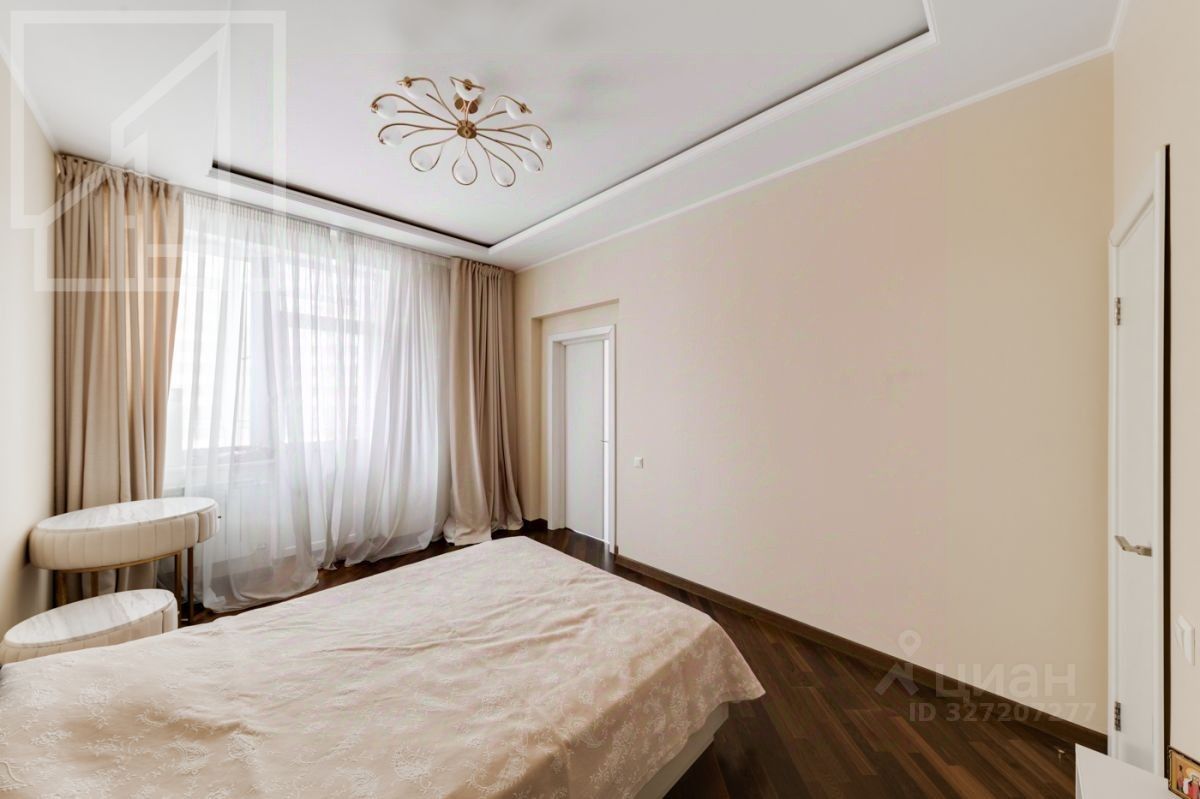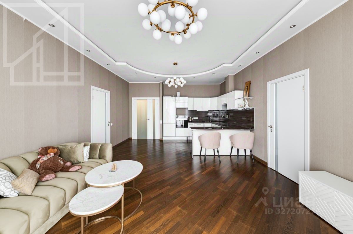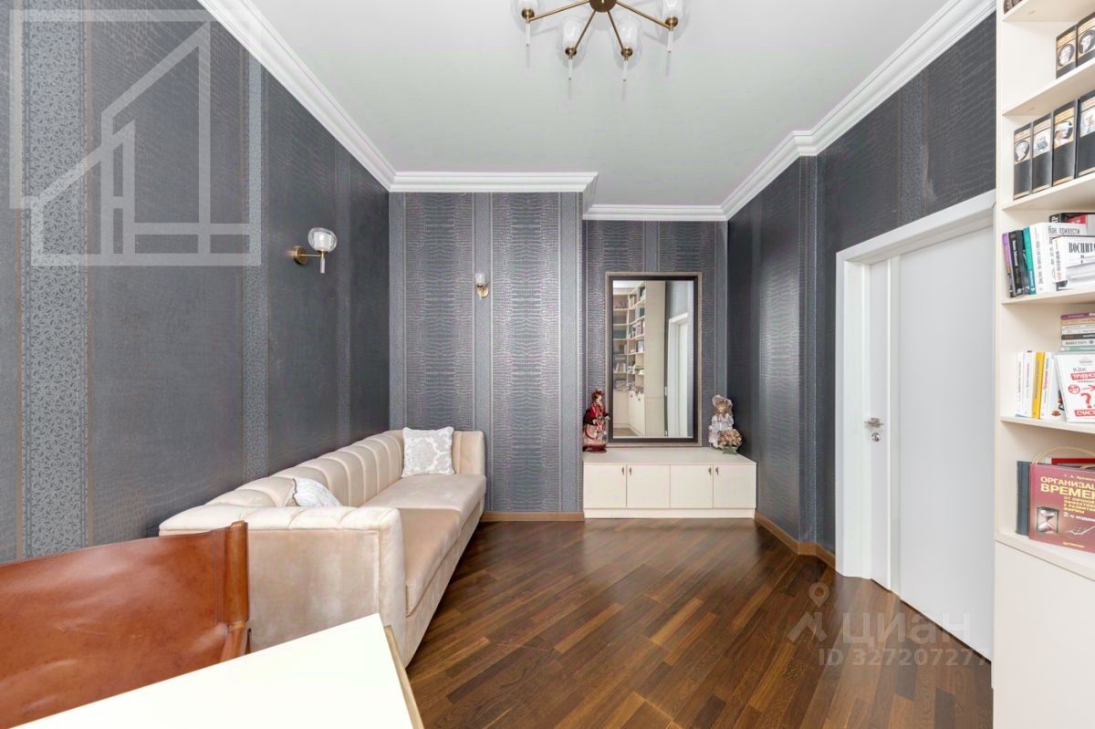 Планировка: гостиная-кухня, одна спальня, кабинет, гардеробная, один совмещенный санузел и гостевой санузел. В квартире выполнен современный авторский ремонт. Окна выходят на внутренний двор дома. В квартире установлена система кондиционирования, система подогрева полов.
