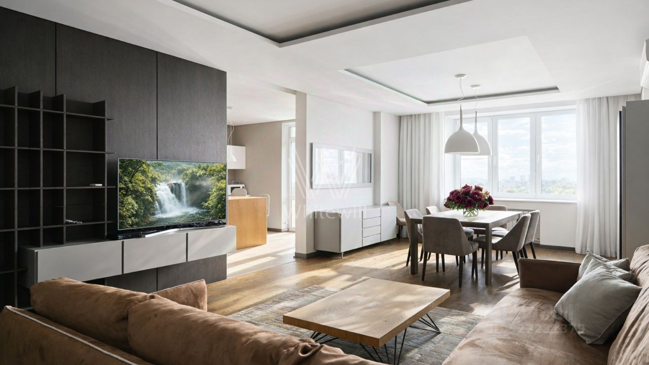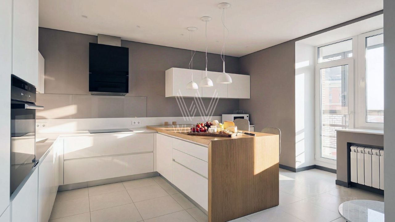 Просторная квартира в комплексе ''Весна на Балтийском''. Выполнен современный ремонт в минималистичном стиле. Квартира укомплектована итальянской мебелью и бытовой техникой Miele и Siemens.