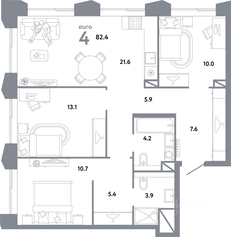 Общая площадь82,4 м2