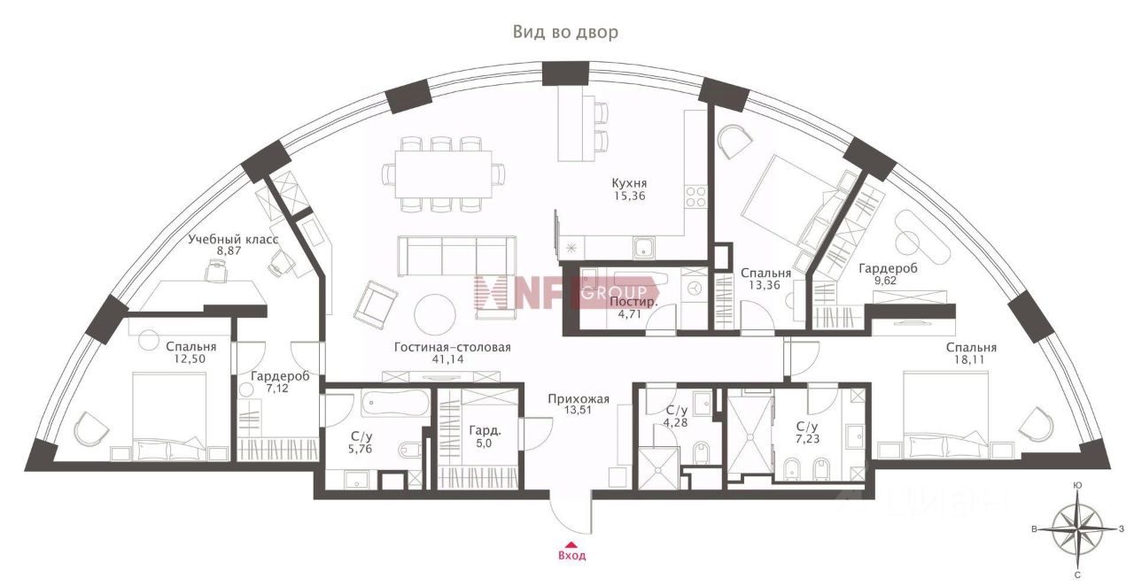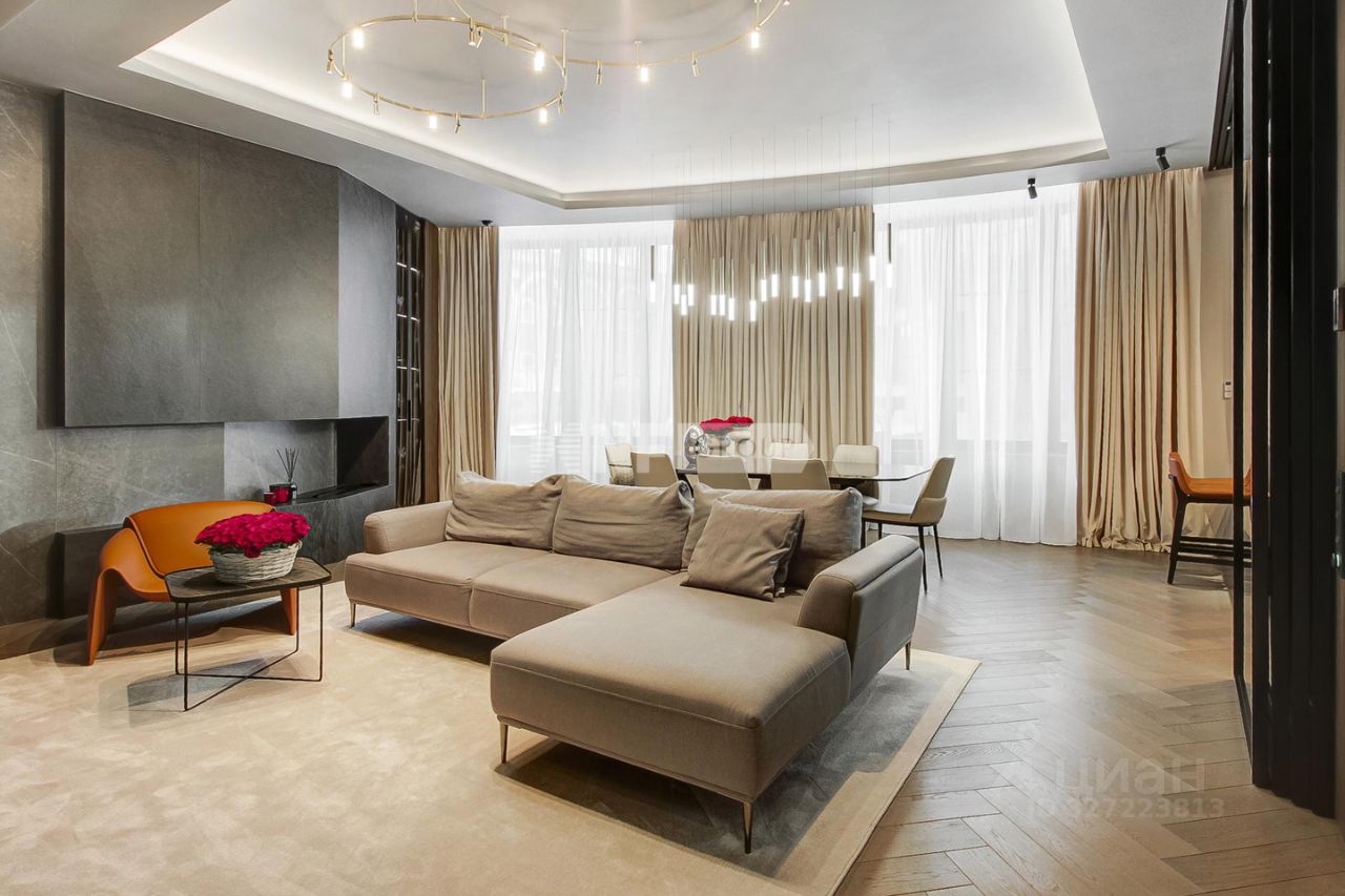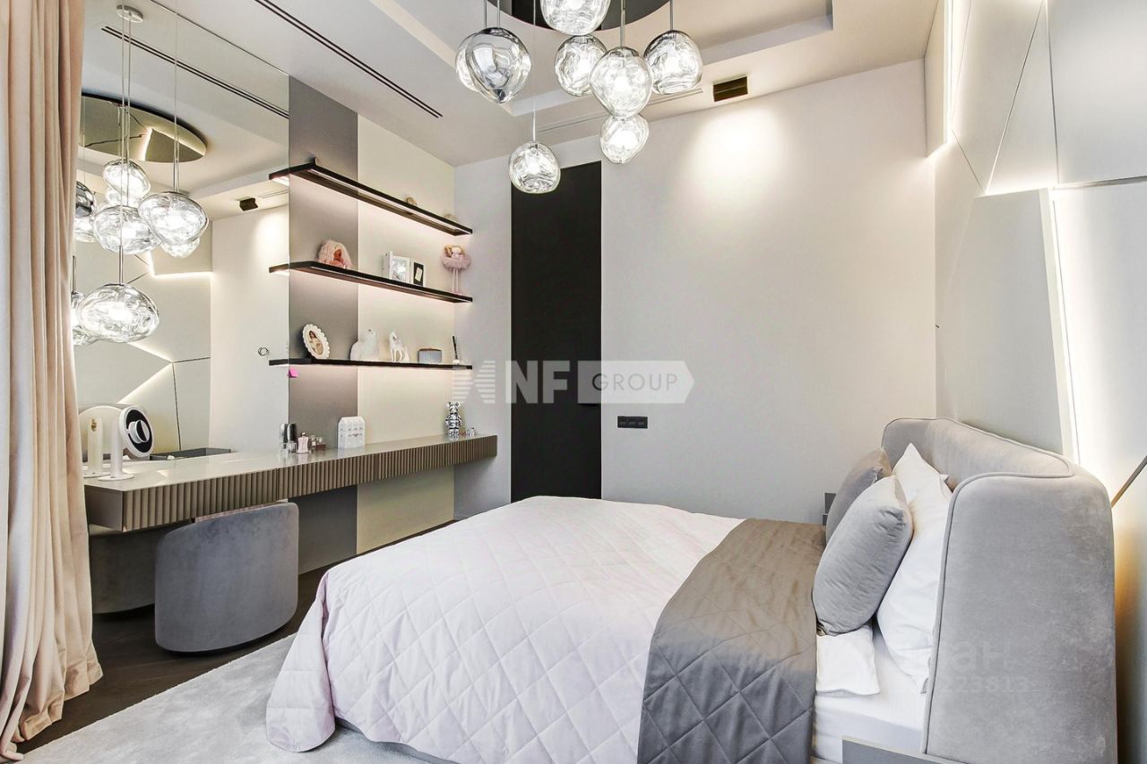 Лот: 104284. В продаже квартира с отделкой в жилом комплексе ''Грюнвальд'', клубном квартале рядом с парком МШУ ''Сколково'' и долиной реки Сетунь. Закрытая территория, приватная атмосфера и развитая инфраструктура района. Планировка: просторная кухня-гостиная с биокамином, мастер-спальня с душевой нишей и гардеробной, две детские комнаты с ванной и гардеробными, прачечная, большая гардеробная, прихожая. Интерьер выполнен по проекту Golden Studio с использованием натурального камня, шпона и дерева. Натуральный паркет Weitzer, стены и изголовье из алькантары, увеличенные дверные проёмы, текстиль с электроприводами. Кухня с фурнитурой Blum и техникой Asko, сантехника Hansgrohe, техника Miele и Asko, системы очистки воды и измельчения отходов. Установлены системы кондиционирования Mitsubishi с климат-контролем и сценарное освещение. Мебель Poliform и Cattelan Italia, продуманные системы хранения. Высота потолков — 3,3 м. Вид из окон в камерный внутренний двор. Два машино-места и кладовая включены в стоимость. В пешей доступности рестораны, ''Азбука вкуса'', образовательные учреждения и фитнес-клубы. Удобный выезд на МКАД, проспект Генерала Дорохова и Кутузовский проспект, до центра 2030 минут.