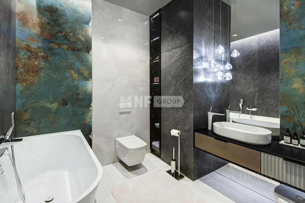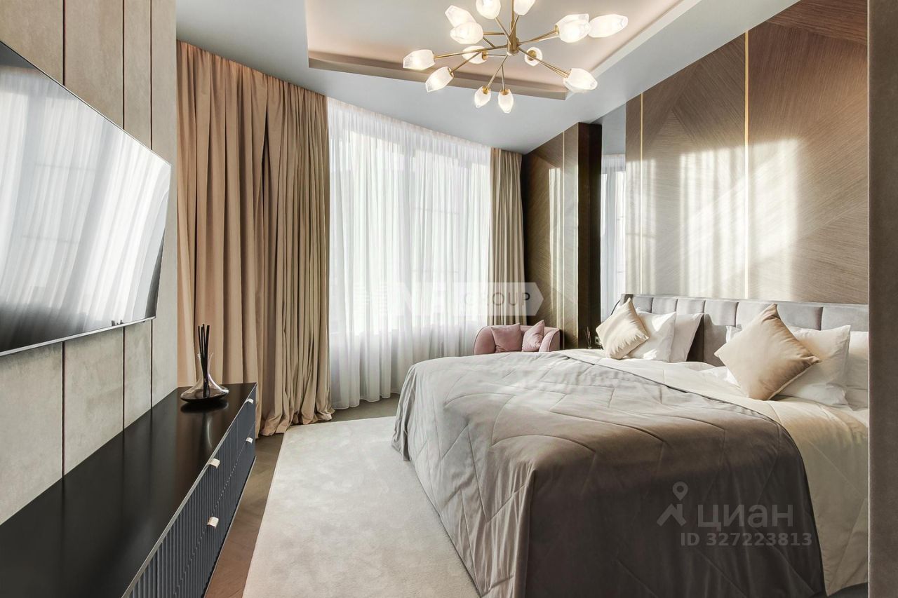 Лот: 104284. В продаже квартира с отделкой в жилом комплексе ''Грюнвальд'', клубном квартале рядом с парком МШУ ''Сколково'' и долиной реки Сетунь. Закрытая территория, приватная атмосфера и развитая инфраструктура района. Планировка: просторная кухня-гостиная с биокамином, мастер-спальня с душевой нишей и гардеробной, две детские комнаты с ванной и гардеробными, прачечная, большая гардеробная, прихожая. Интерьер выполнен по проекту Golden Studio с использованием натурального камня, шпона и дерева. Натуральный паркет Weitzer, стены и изголовье из алькантары, увеличенные дверные проёмы, текстиль с электроприводами. Кухня с фурнитурой Blum и техникой Asko, сантехника Hansgrohe, техника Miele и Asko, системы очистки воды и измельчения отходов.