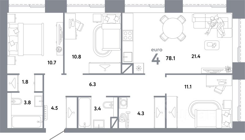 Общая площадь78,1 м2