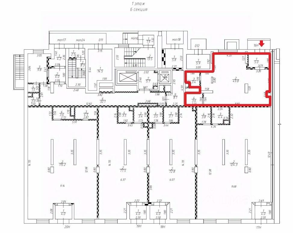 Коммерческое помещение площадью 61.8 м², расположено по адресу: г. Москва, 6-я Радиальная улица, 7/1к1, помещение 16Н, район Бирюлёво Восточное. Объект занимает 1 этаж в здании с этажностью 20 этажей. Помещение без отделки, свободного назначения, имеет отдельный вход.