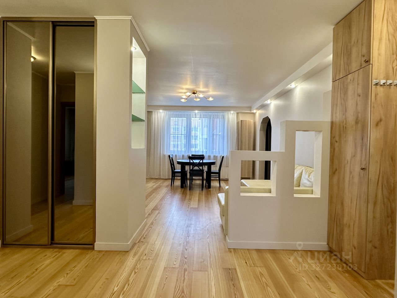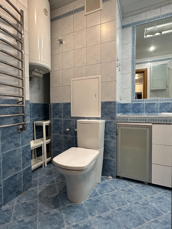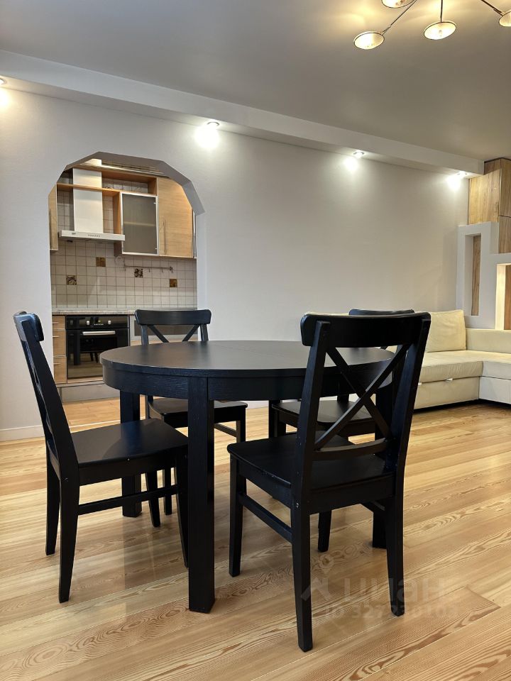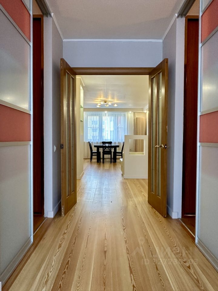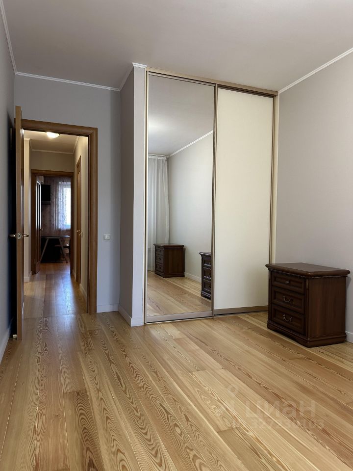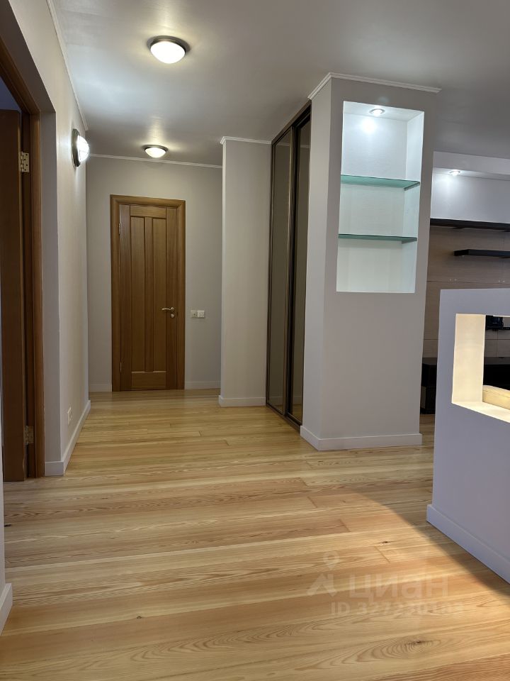 Сдается просторная и удобная квартира. На полу массив лиственницы. Кухня-гостиная и три изолированные комнаты. Общая площадь квартиры составляет 95 кв. м, она расположена на 10-м этаже 14-этажного панельного дома, построенного в 2003 году. Высота потолков — 2,7 метра. В квартире два санузла и два балкона с видом на улицу и во двор.