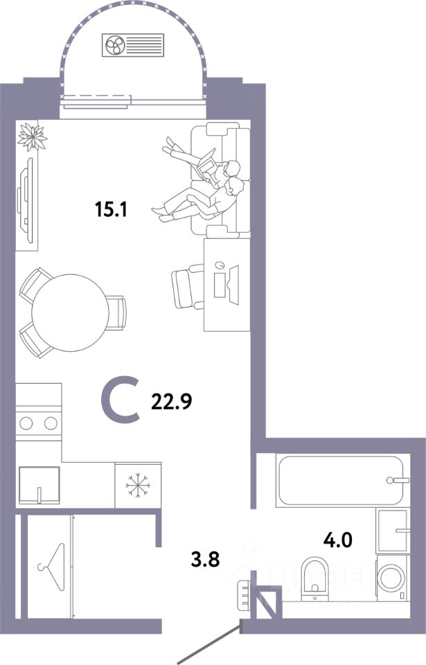 Общая площадь22,9 м2