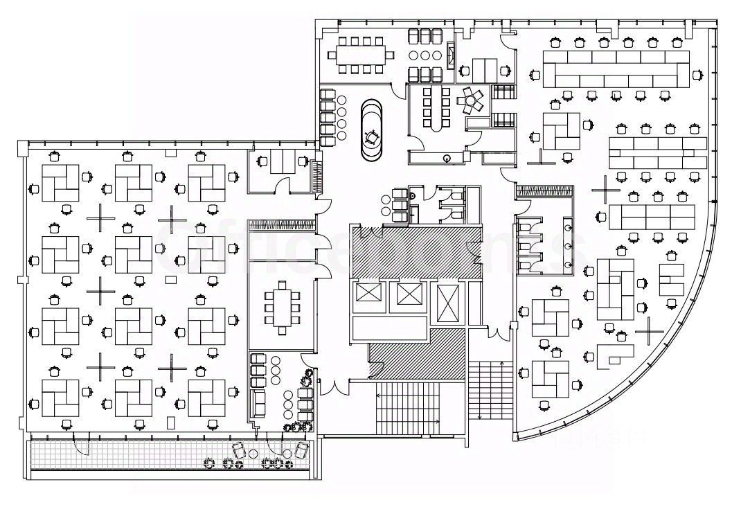 Офис с дизайнерской отделкой, смешанной планировкой, на 100 рабочих мест. В аренду включены: комплектация офисной мебелью и бытовой техникой в кофе-зонах. Центральная система кондиционирования, приточно-вытяжная система вентиляции. В наличии подземная парковка (27600 руб. за 1 м/место в месяц).
