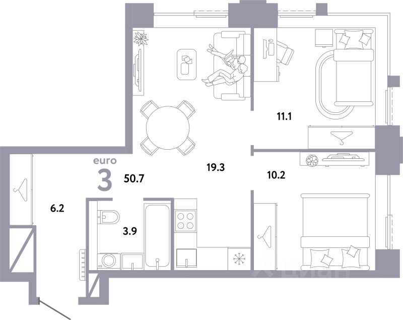 Общая площадь50,7 м2