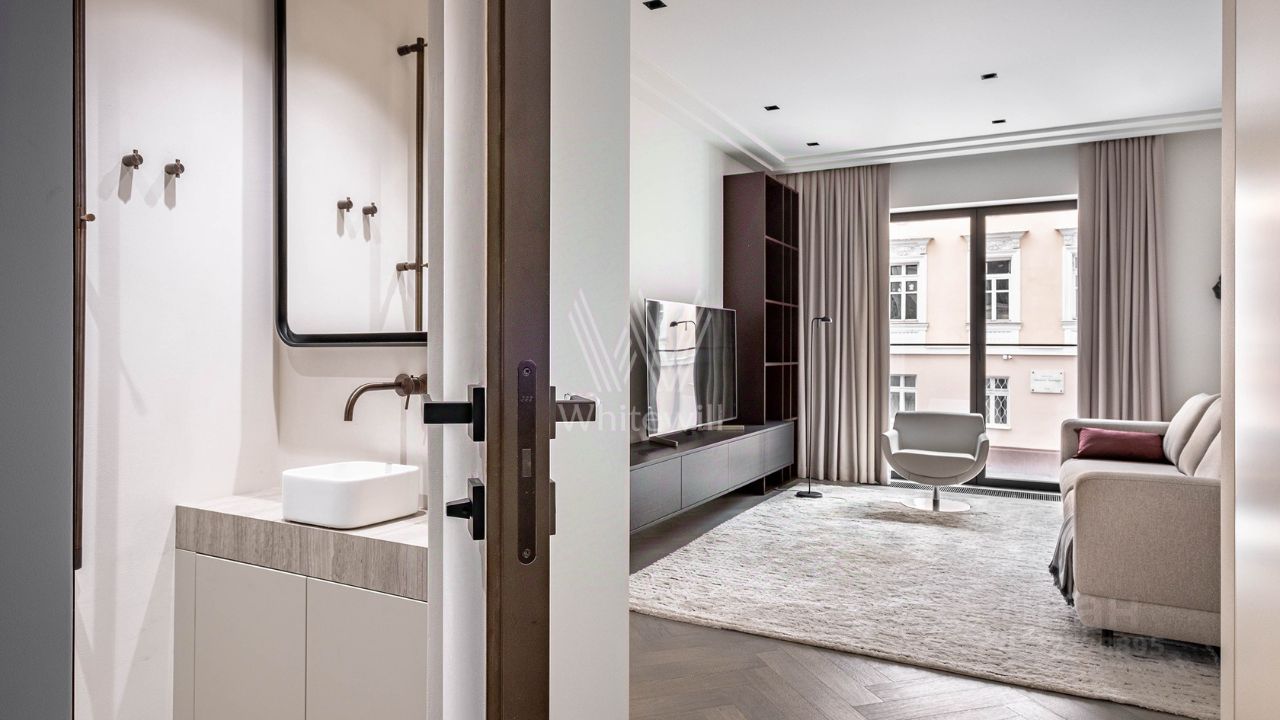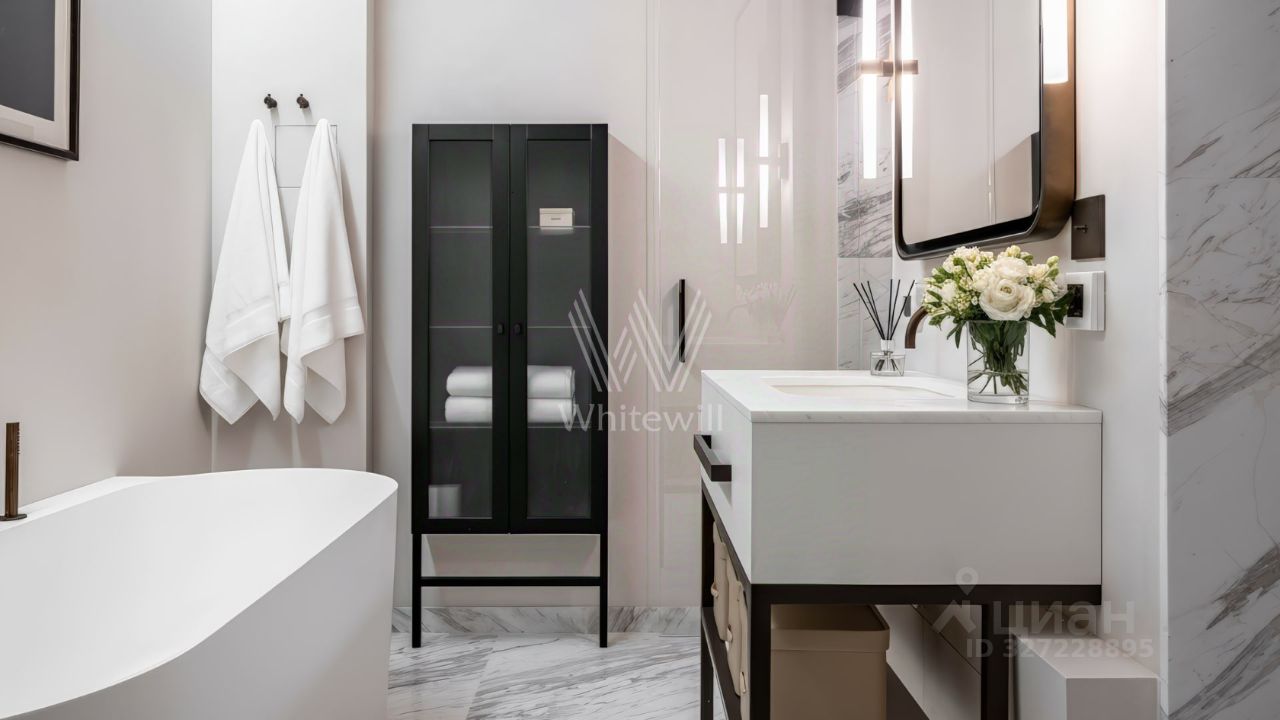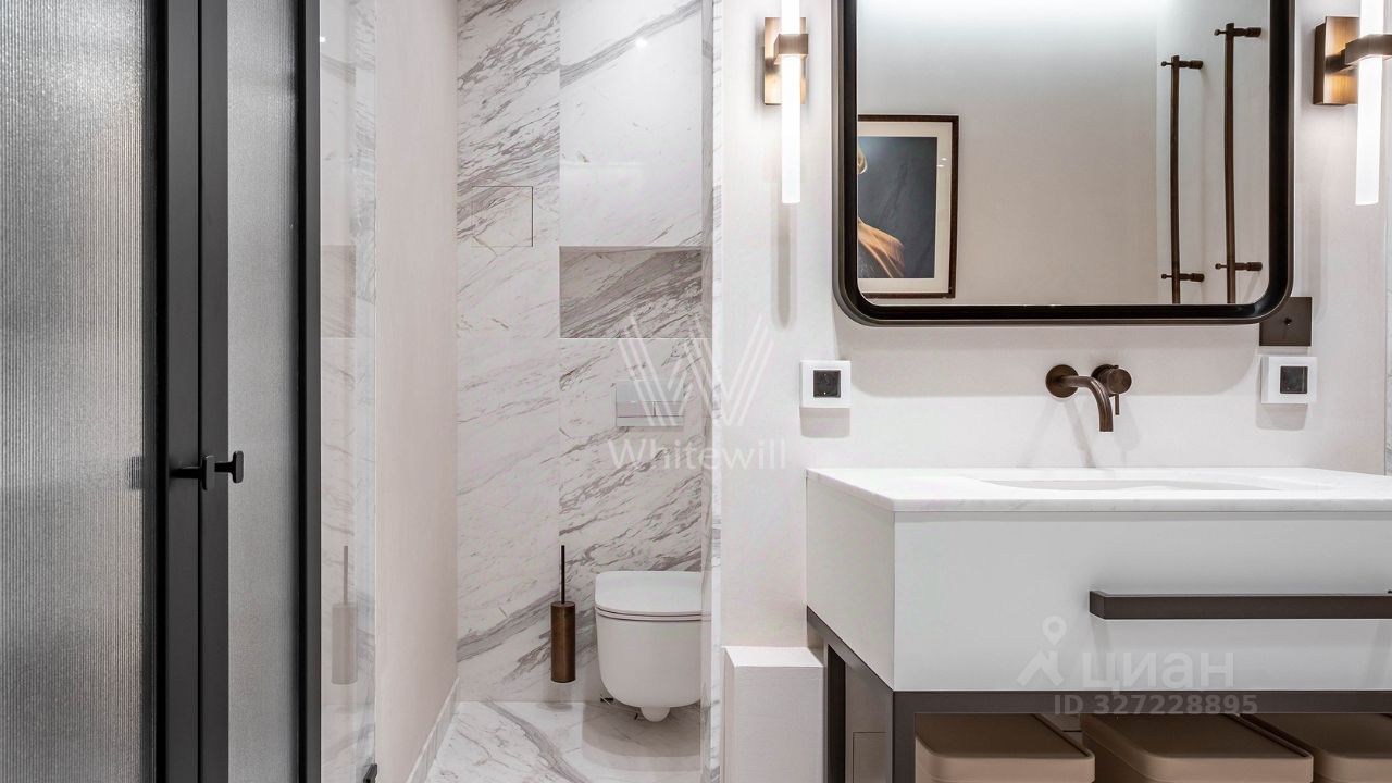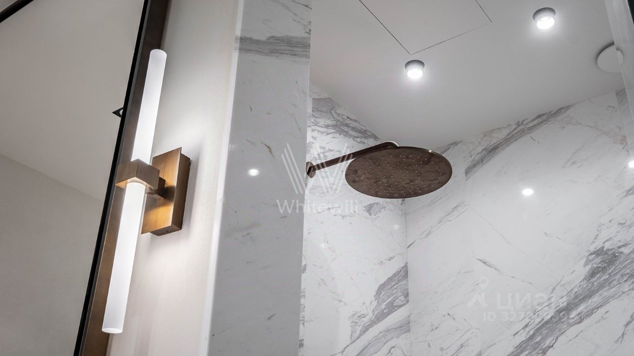 После насыщенного дня вас встречает безупречная спальня и ванная, отделанная белым мрамором с дымчатыми прожилками. В этом пространстве нет лишнего — только идеальные пропорции и безупречный баланс формы и содержания.