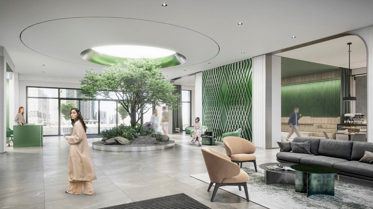 Территория комплекса продумана до мелочей: здесь обустроен приватный двор без машин, оборудованы площадки и игровые комплексы для всех возрастов, а на первом этаже разместится собственная коммерческая инфраструктура. Для любителей активного образа жизни предусмотрена workout зона с теннисными столами, спортивными площадками и садом камней. Озеленение выполнено в духе пейзажного парка — оно создаёт особую атмосферу уединения и гармонии с природой.