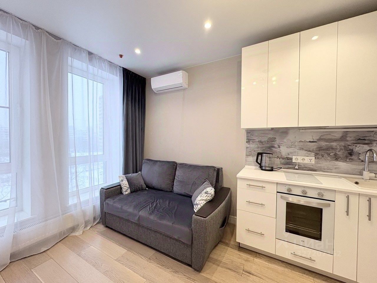 - Полная комплектация — техника (европейские бренды), мебель, шкафы, два кондиционера - Удобная планировка — изолированная спальня, кухня-гостиная, вместительный коридор, совмещенный санузел - Ремонт под ключ — современные материалы, продуманный дизайн, разные световые сценарии