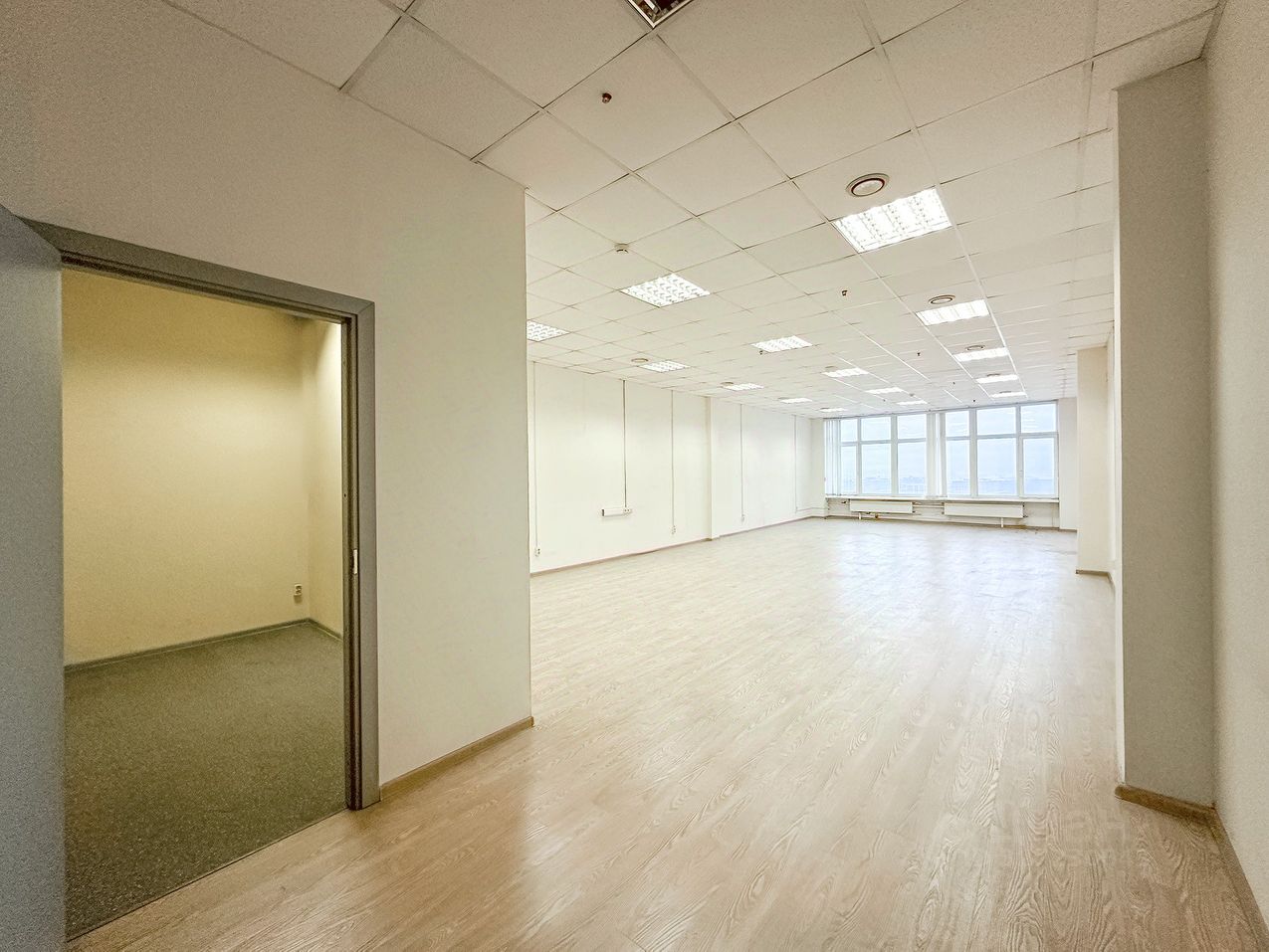 Офисное помещение из 2-х кабинетов, выполнен типовой ремонт, приточно-вытяжная система вентиляции, сплинкерное пожаротушение, установлены АПС и системы оповещения при пожаре.