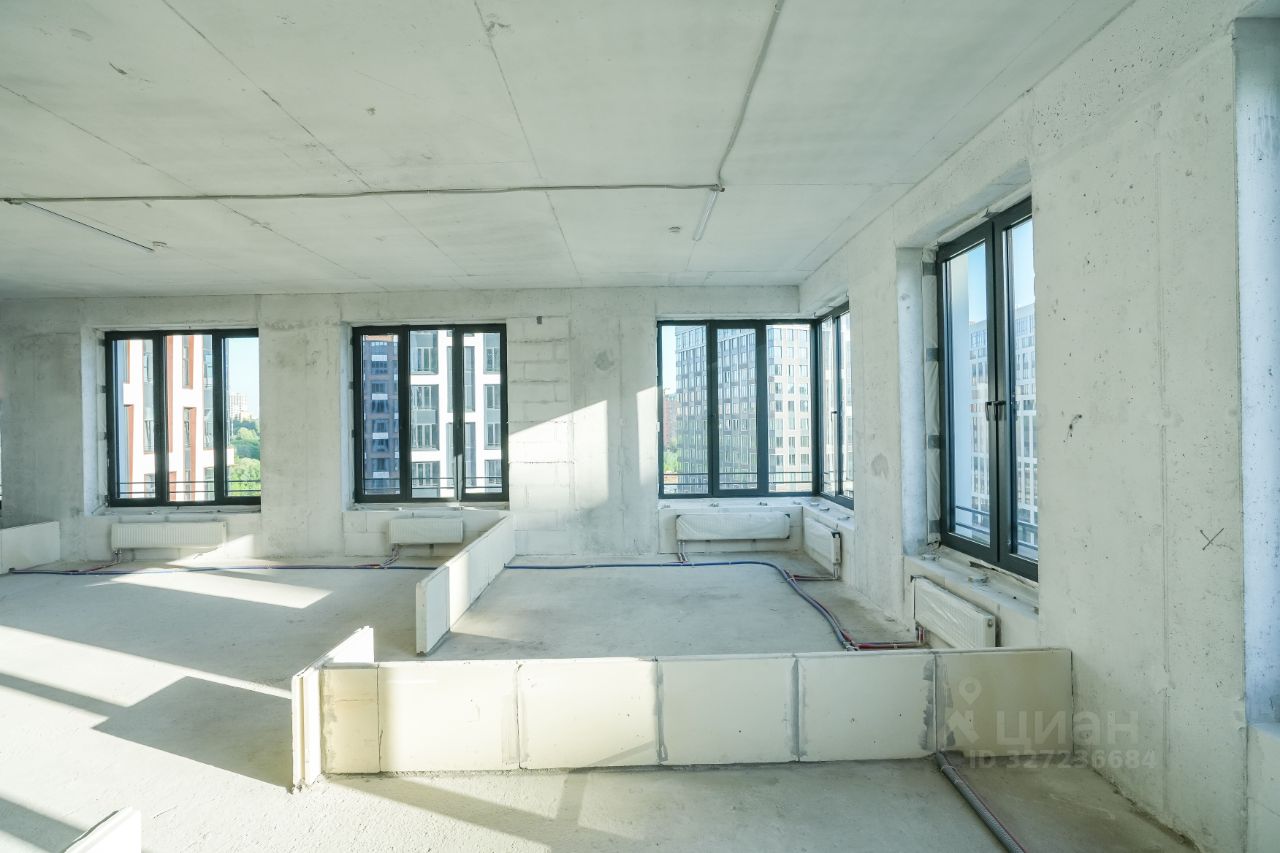 В пентхаусе: • светлая кухня-гостиная 46,9 кв. м с дровяным камином и угловым панорамным остеклением, • пять спален, в том числе мастер-спальня с личной гардеробной и ванной комнатой, • панорамные окна, • потолки 4,2 м.