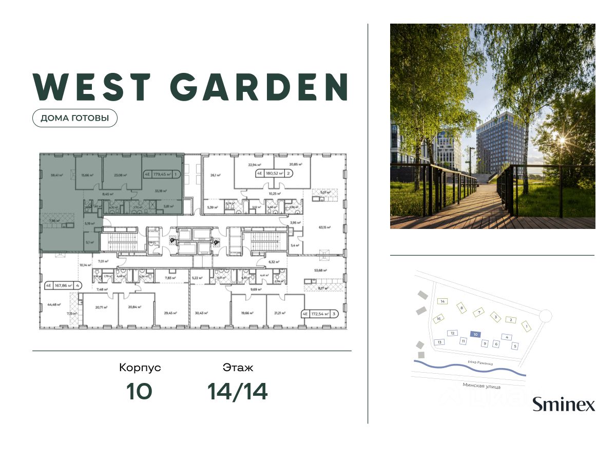 West Garden расположен в зелёном Западном районе Москвы, который вдохновляет на прогулки и занятия спортом на свежем воздухе. Тысяча гектаров парков и зон отдыха в непосредственной близости от квартала открывает безграничные возможности для прогулок и отдыха.