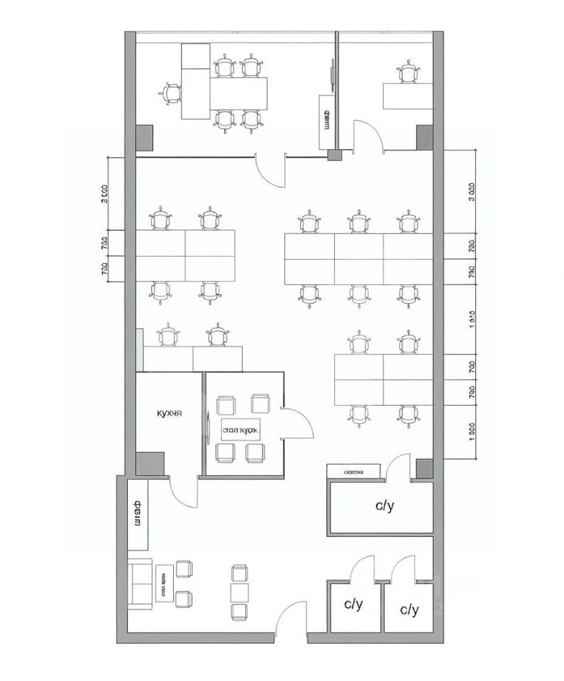 *Количество рабочих мест рассчитано автоматически: от 4,5 м2 на человека до 8 м2 на человека.