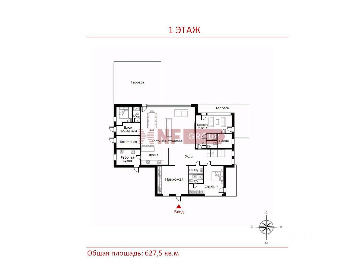 Общая площадь627,5 м2
