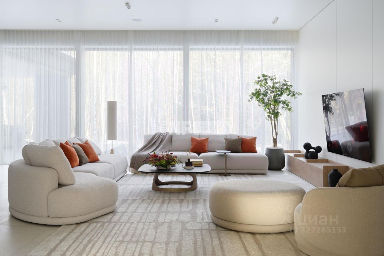 Villa Harmonia-метафора безмятежности и спокойствия. Лаконичный дизайн пространства позволяет сфокусироваться наслаждении и эстетике. А панорамные окна и высокие потолки формируют полное ощущение свободы. Готовый к заселению дом площадью 627,5 кв.м. с архитектурой в стиле Hi-Tech. Пространство включает 6 спален, SPA-зону с сауной, летнюю кухню на террасе с мангалом. Отделка выполнена с использованием натуральных материалов, дополнена панорамным остеклением, открывающим вид на лес.