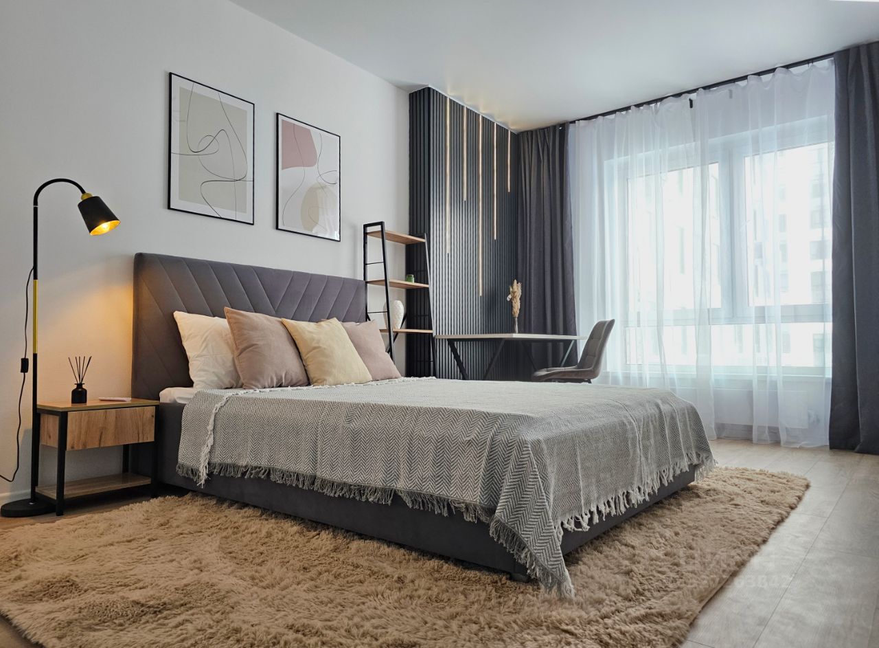 Спальные места двуспальная кровать, двуспальный диван. Продуманное хранение отдельный гардероб с гибкой системой хранения (можно переставлять полки по желанию), комод, большой шкаф в прихожей с зеркалами и открытая вешалка, пространство под кроватью и диваном, высокие вместительные шкафы кухни, тв-консоль, стеллаж. Два рабочих места - в спальне и второй комнате. Вторая комната свободна, её мебелировка обсуждаема с конкретным арендатором под потребности.