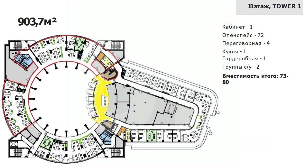 Площадь: 6 465 м2. Планировка: открытая. Состояние: готовность к въезду с. Ставка (включая эксплуатацию): 82 326 руб. за м2/год. Арендная плата: 44 352 998 руб./мес. Налог: включая НДС. Коммунальные расходы: оплачиваются по факту. Этаж: 9, 11, 18, 20 из 26. Тип аренды: Прямая аренда. Охрана: круглосуточная охрана здания.