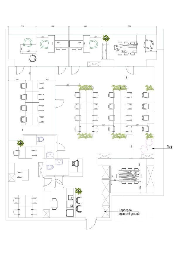 *Количество рабочих мест рассчитано автоматически: от 4,5 м2 на человека до 8 м2 на человека.
