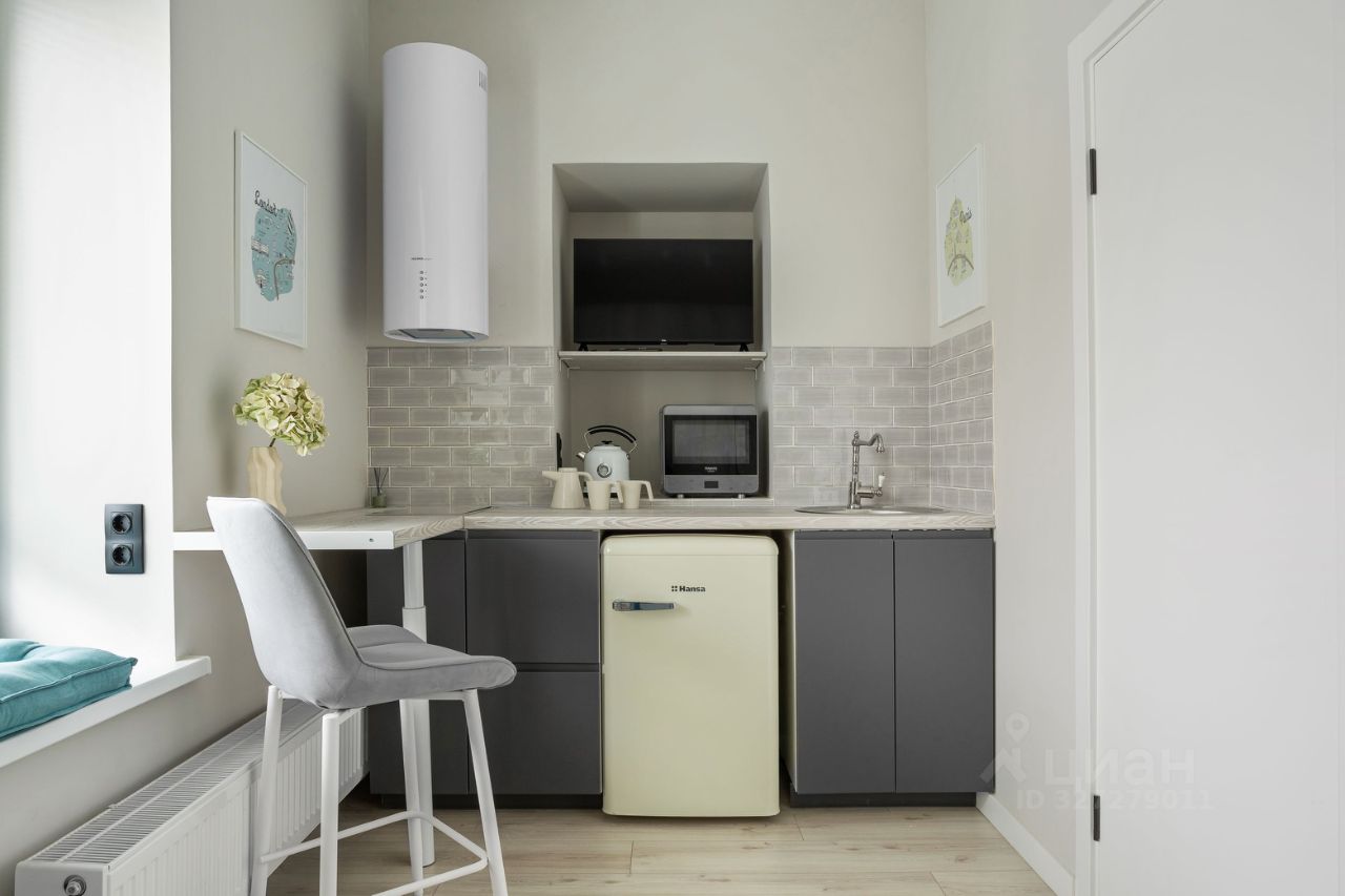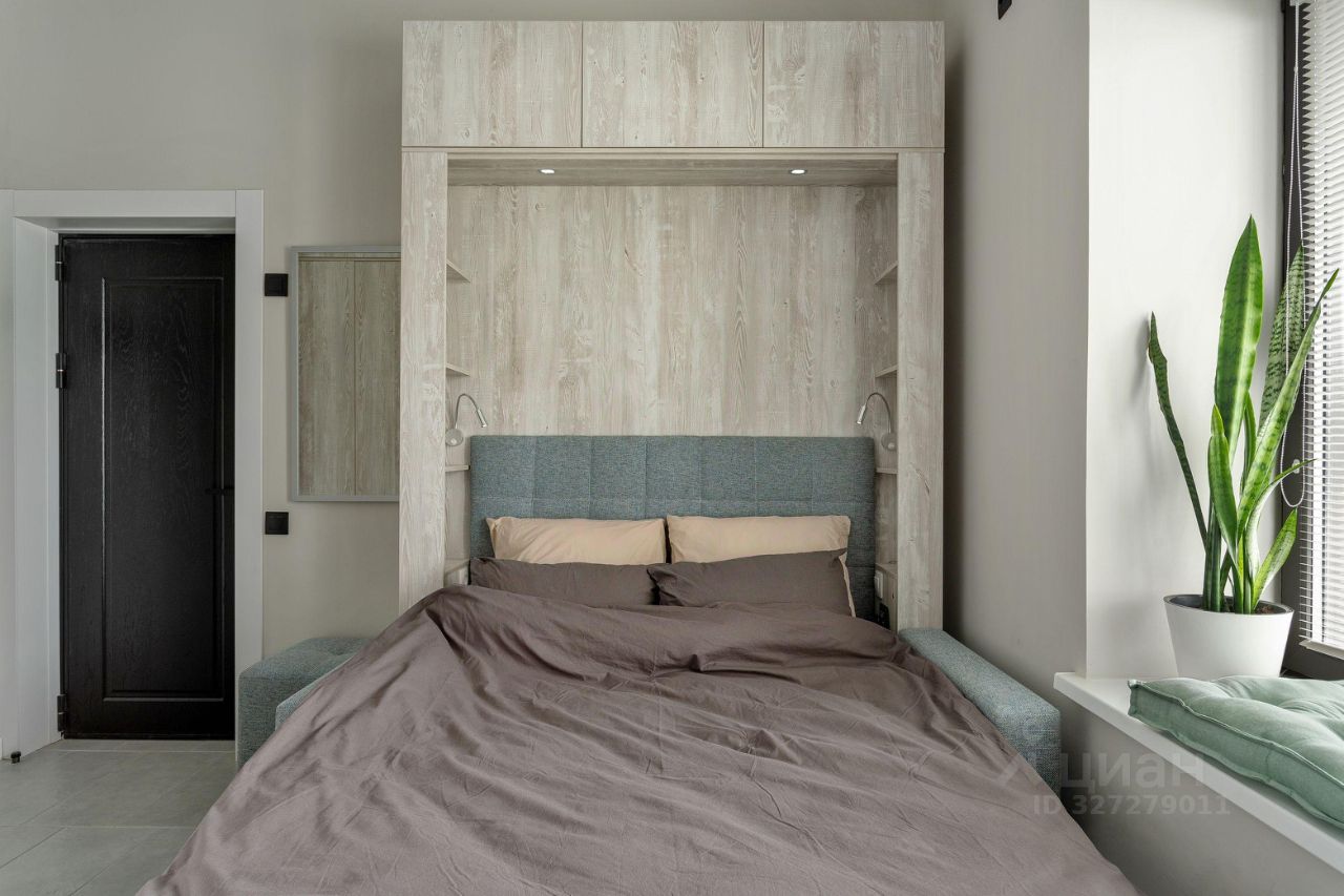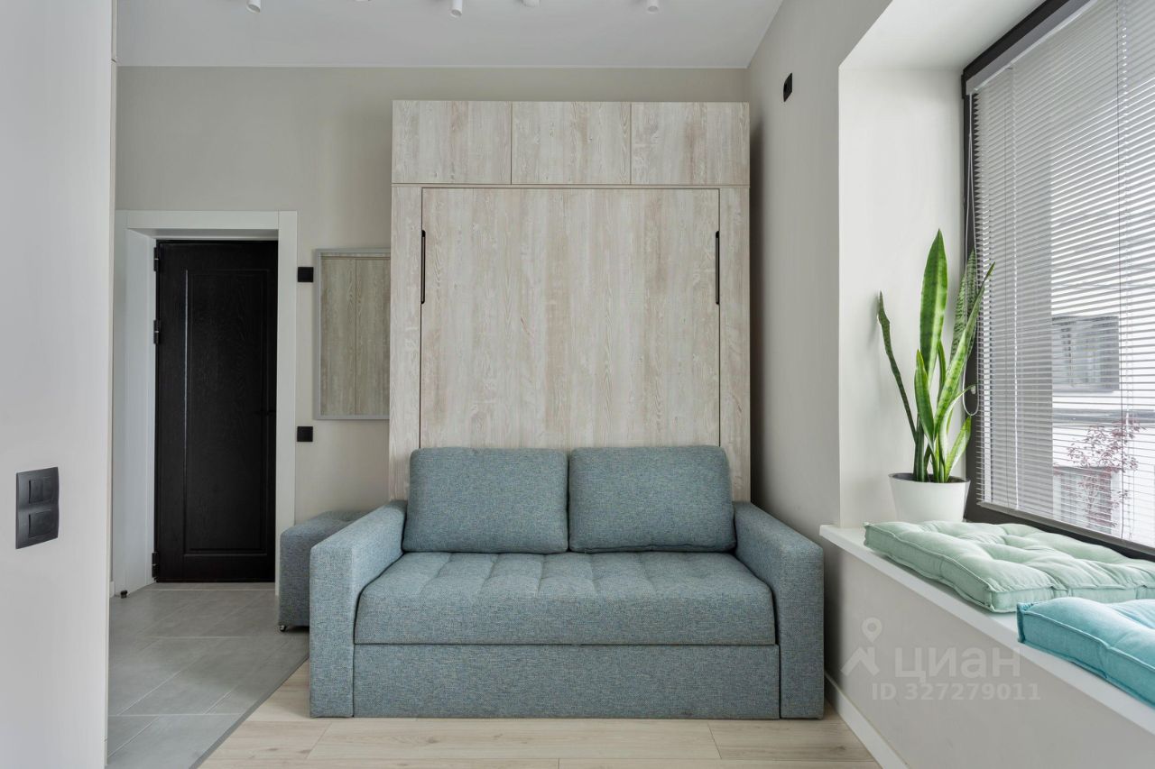 В студии есть всё необходимое для комфортного проживания: полноценная кровать с ортопедическим матрасом (это кровать-трансформер и днем это меняется на диван), индукционная плита, вытяжка, микроволновая печь с грилем, стиральная машина, два шкафа, постельное белье, посуда-в студии все готово к проживанию.