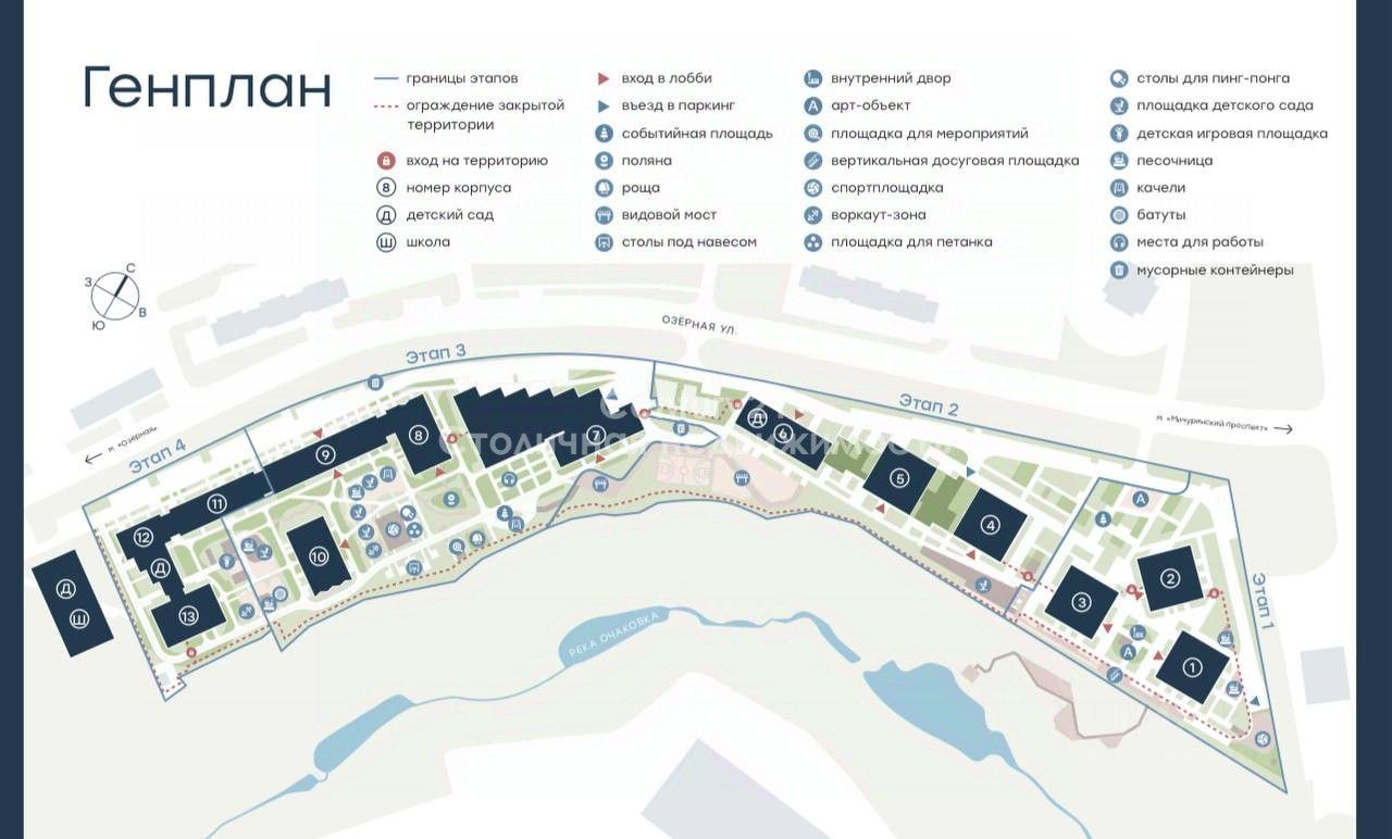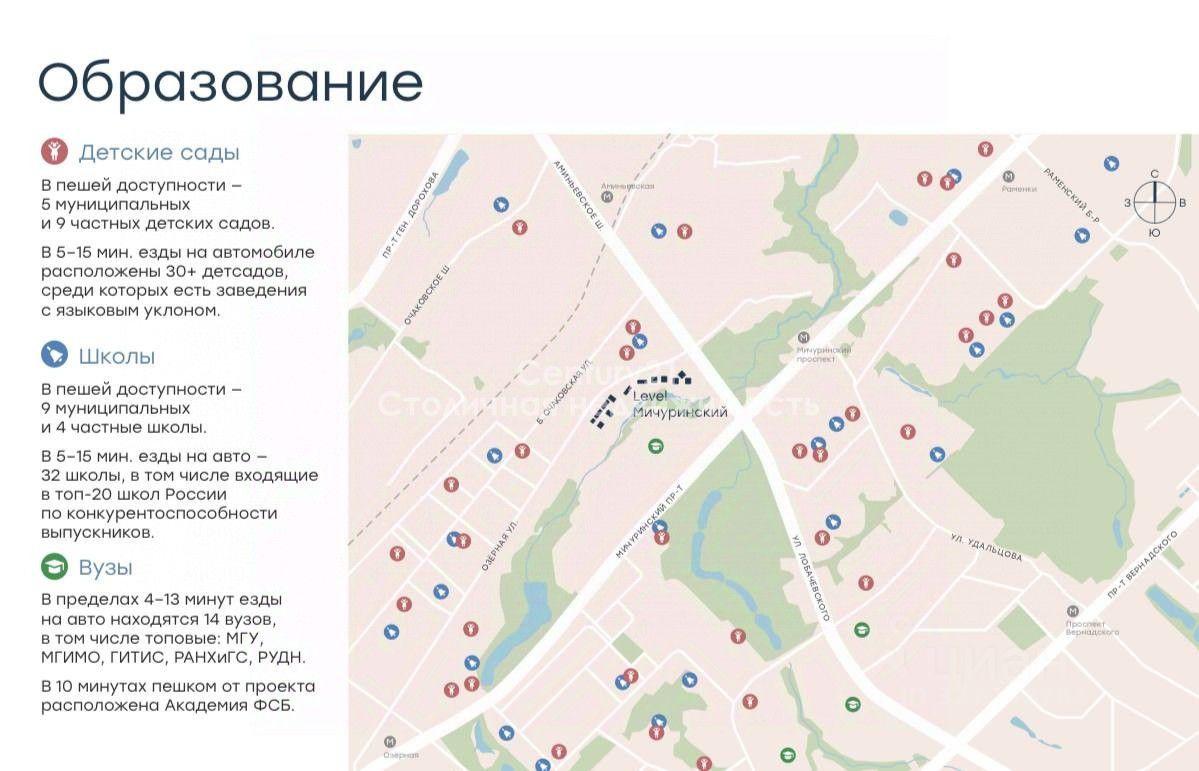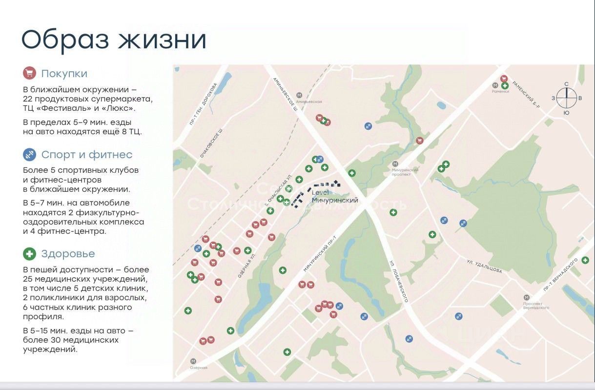 Level Мичуринский это жилой квартал бизнес-класса, который находится в Очаково-Матвеевском районе на границе с районом Раменки на западе Москвы. ЖК состоит из 11 жилых домов, расположенных вдоль реки Очаковка. У жителей Level Мичуринский будет своя благоустроенная набережная с выходом реки.