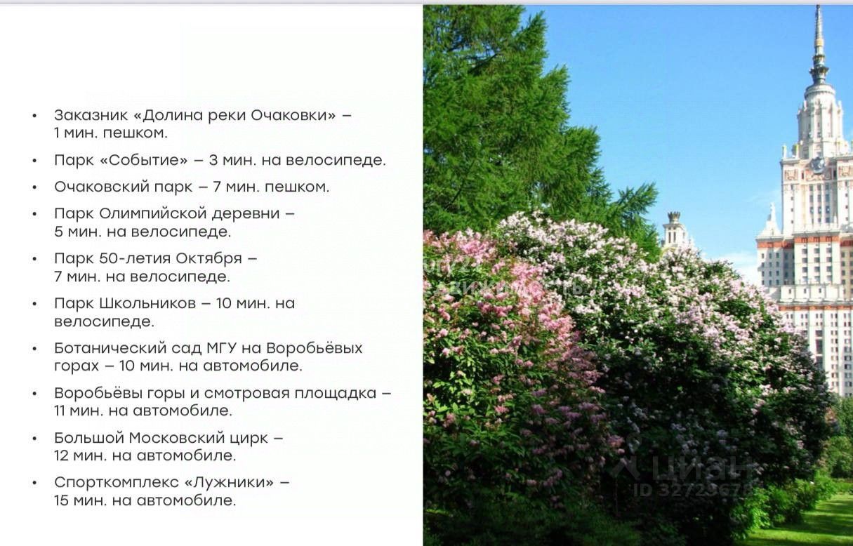 Поблизости несколько крупных зеленых зон: ландшафтные заказники Долина реки Сетунь и Долина реки Раменки, парки Олимпийской Деревни и 50-летия Октября.