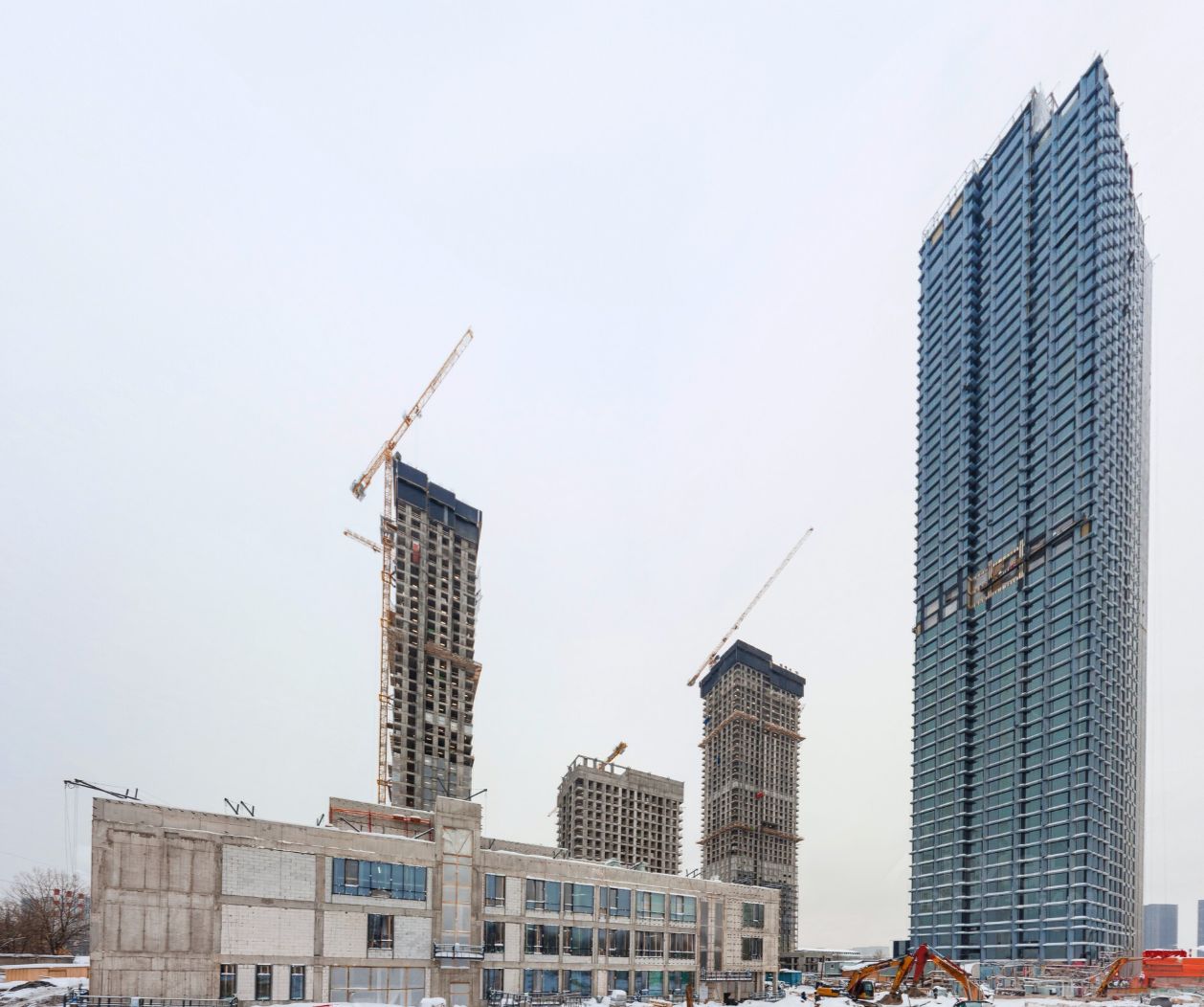 Проект представляет из себя 5 небоскребов с ассиметричной геометрией. Команда архитектурного бюро КАМЕN воплотила величественность гор и неповторимость их очертаний. Алюминиевые панели и эмалированные закаленные стекла сияют как заснеженные вершины гор. Природные цвета и фактуры уравновешивают футуристичные фасады, поддерживают природную симфонию ландшафта и философию горных вершин. Концепция дизайна лобби — авторский проект бюро MAD ARCHITECTS.