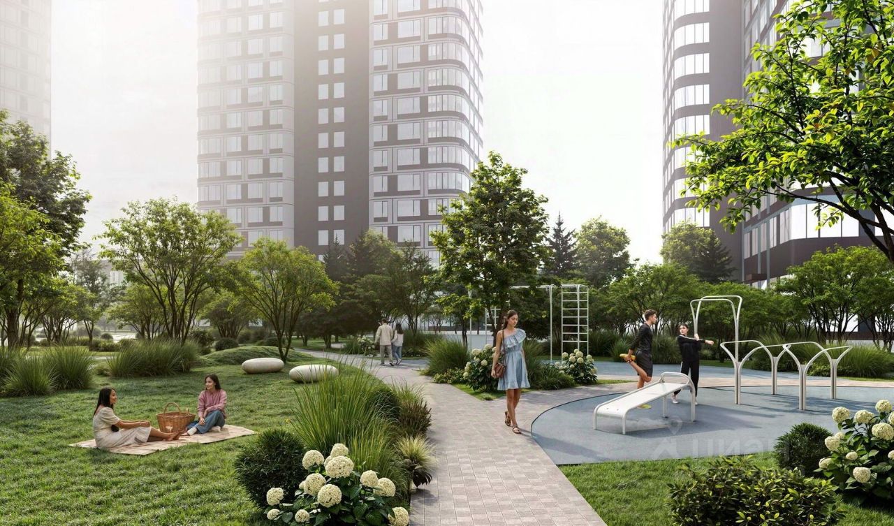 Особенности квартала: • Свой парк ''Зеленая Река'' - 10 га зелени и развлечений на любой вкус! • Уникальная для Москвы архитектура - Проект создан архитектурной мастерской ATRIUM по дизайн-коду британских бюро LDA Design и UHA London. • Богатая инфраструктура с детскими садами и лицеем им. Баумана, кафе и ресторанами, супермаркетами и аптеками, зоной для фитнеса, бассейном и мед. центром. • Квартиры с панорамными окнами, террасами, ванными с окнами и каминами редких форматов. • Закрытые безопасные зелёные дворы-парки без машин!