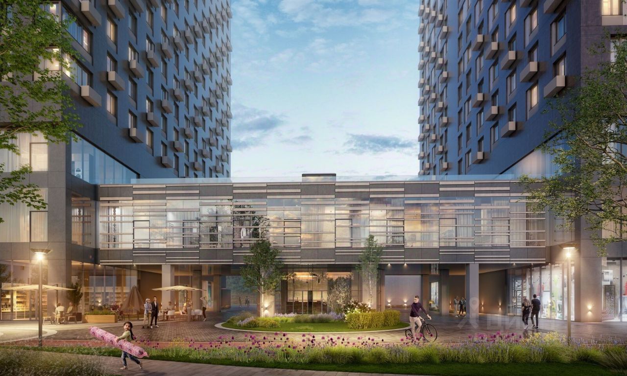 Особенности квартала: • Свой парк ''Зеленая Река'' - 10 га зелени и развлечений на любой вкус! • Уникальная для Москвы архитектура - Проект создан архитектурной мастерской ATRIUM по дизайн-коду британских бюро LDA Design и UHA London. • Богатая инфраструктура с детскими садами и лицеем им. Баумана, кафе и ресторанами, супермаркетами и аптеками, зоной для фитнеса, бассейном и мед. центром. • Квартиры с панорамными окнами, террасами, ванными с окнами и каминами редких форматов. • Закрытые безопасные зелёные дворы-парки без машин!