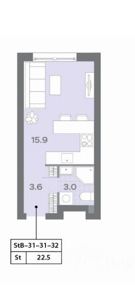 ПАРАМЕТРЫ: • 16 этаж из 32 • Площадь 22.4 м² • Чистовая отделка • Дом сдан, выдача ключей ожидается в ближайшие 1-2 месяца