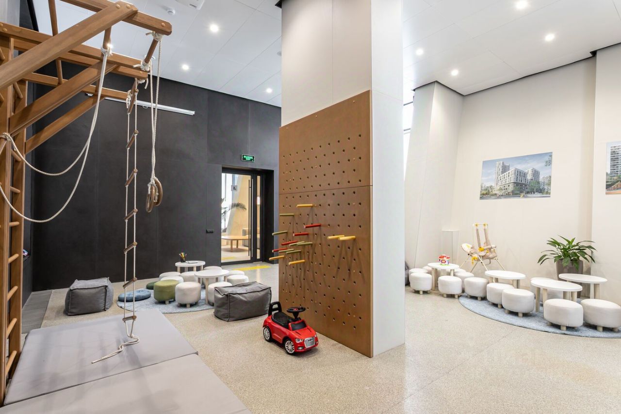 Особенности квартала: • Свой парк ''Зеленая Река'' - 10 га зелени и развлечений на любой вкус! • Уникальная для Москвы архитектура - Проект создан архитектурной мастерской ATRIUM по дизайн-коду британских бюро LDA Design и UHA London. • Богатая инфраструктура с детскими садами и лицеем им. Баумана, кафе и ресторанами, супермаркетами и аптеками, зоной для фитнеса, бассейном и мед. центром. • Квартиры с панорамными окнами, террасами, ванными с окнами и каминами редких форматов. • Закрытые безопасные зелёные дворы-парки без машин!