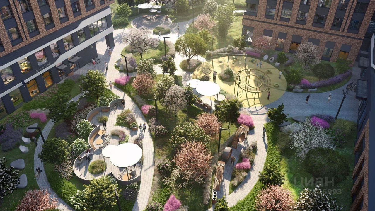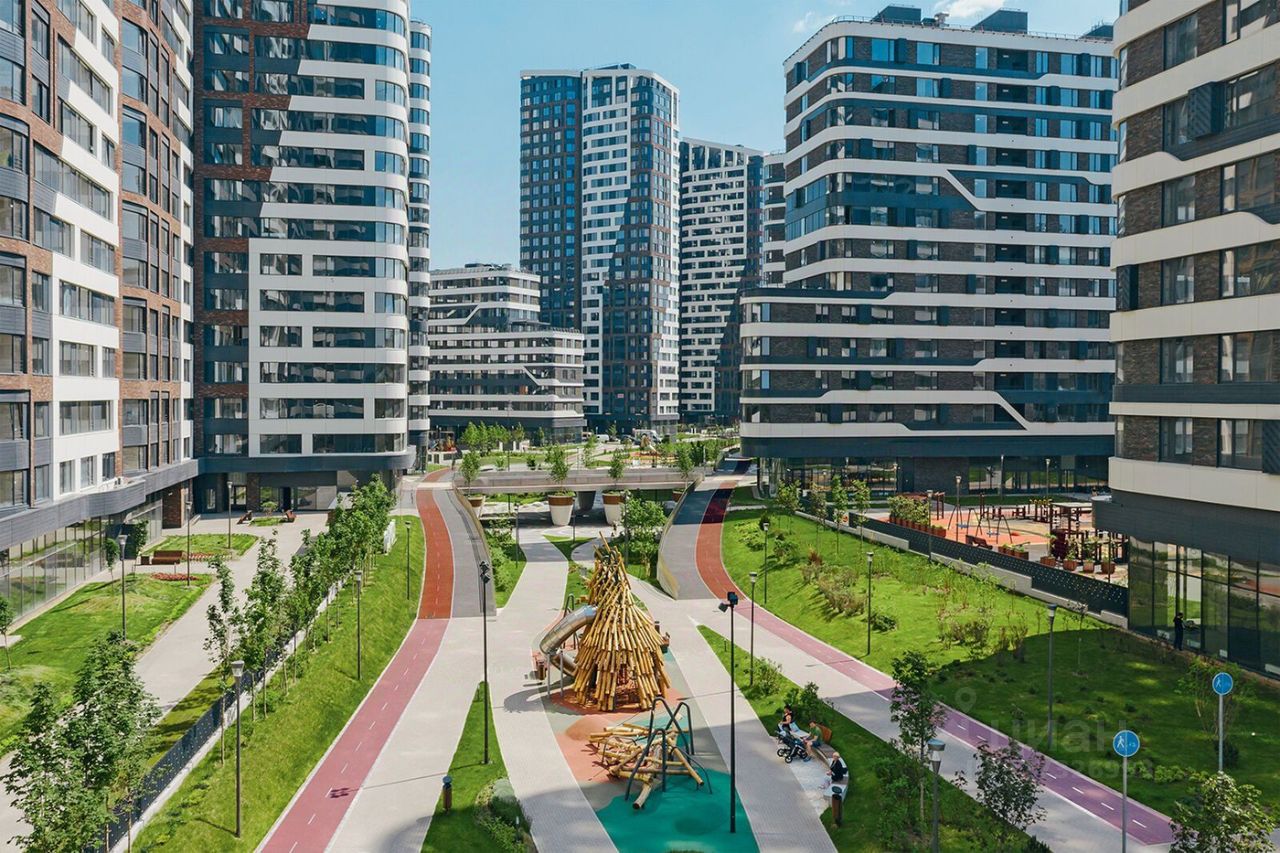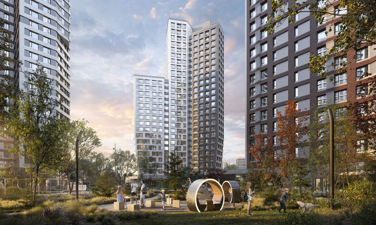Особенности квартала: • Свой парк ''Зеленая Река'' - 10 га зелени и развлечений на любой вкус! • Уникальная для Москвы архитектура - Проект создан архитектурной мастерской ATRIUM по дизайн-коду британских бюро LDA Design и UHA London. • Богатая инфраструктура с детскими садами и лицеем им. Баумана, кафе и ресторанами, супермаркетами и аптеками, зоной для фитнеса, бассейном и мед. центром. • Квартиры с панорамными окнами, террасами, ванными с окнами и каминами редких форматов. • Закрытые безопасные зелёные дворы-парки без машин!
