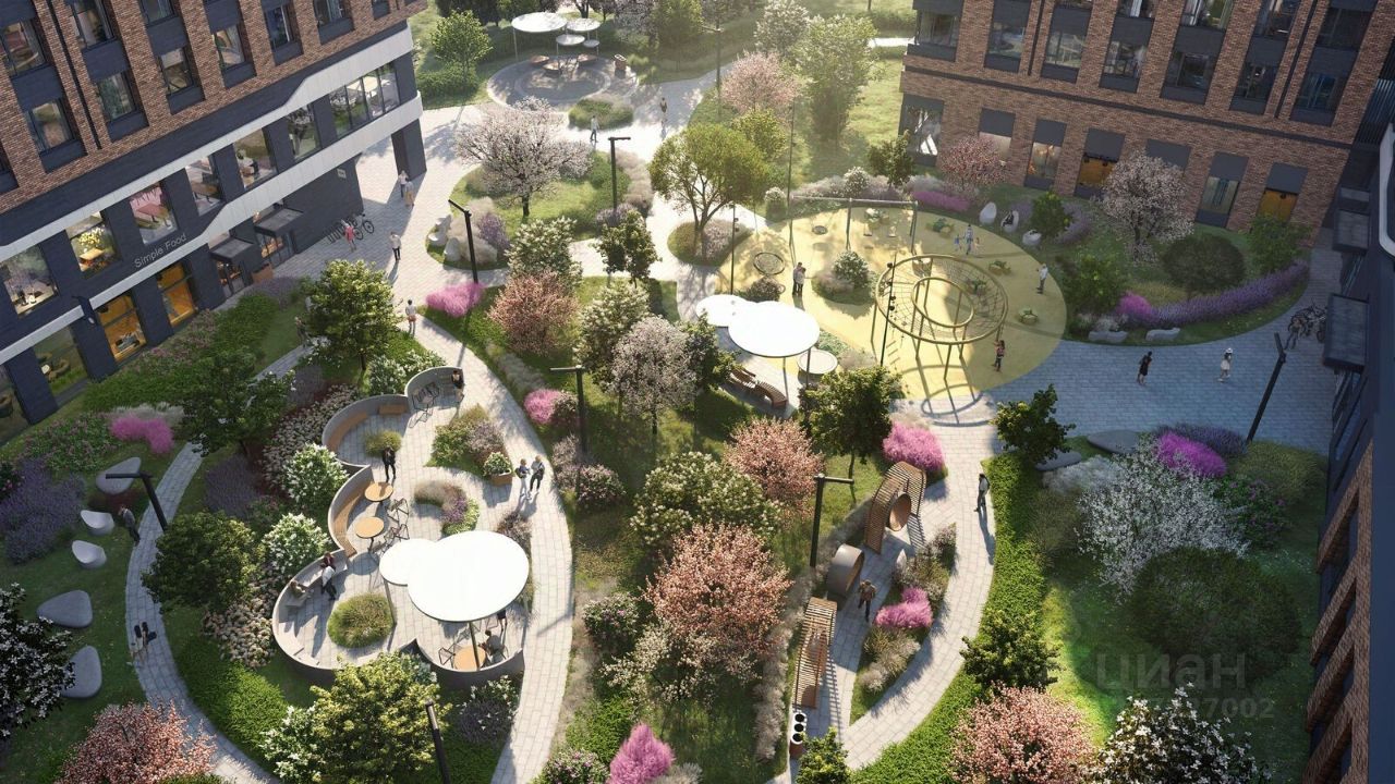 Особенности квартала: • Свой парк ''Зеленая Река'' - 10 га зелени и развлечений на любой вкус! • Уникальная для Москвы архитектура - Проект создан архитектурной мастерской ATRIUM по дизайн-коду британских бюро LDA Design и UHA London. • Богатая инфраструктура с детскими садами и лицеем им. Баумана, кафе и ресторанами, супермаркетами и аптеками, зоной для фитнеса, бассейном и мед. центром. • Квартиры с панорамными окнами, террасами, ванными с окнами и каминами редких форматов. • Закрытые безопасные зелёные дворы-парки без машин!