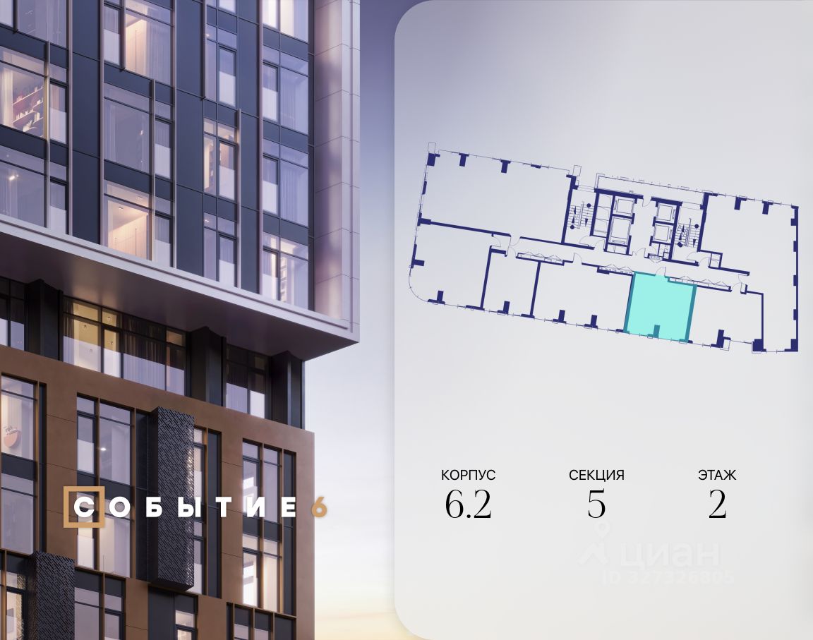 Продаётся 1-комнатная квартира от застройщика: общая площадь 41.10 м², жилая 14.60 м², кухня 19.50 м², 2-й этаж, жилой квартал ''Событие-6'', корпус 2 (секция 5) Срок сдачи: 1 квартал 2029 года.