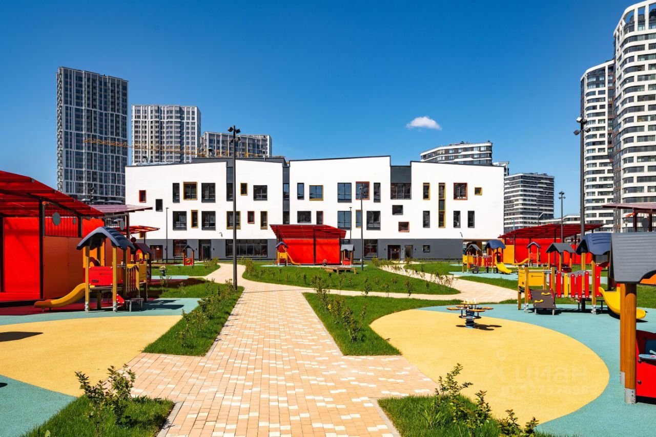 Особенности квартала: • Свой парк ''Зеленая Река'' - 10 га зелени и развлечений на любой вкус! • Уникальная для Москвы архитектура - Проект создан архитектурной мастерской ATRIUM по дизайн-коду британских бюро LDA Design и UHA London. • Богатая инфраструктура с детскими садами и лицеем им. Баумана, кафе и ресторанами, супермаркетами и аптеками, зоной для фитнеса, бассейном и мед. центром. • Квартиры с панорамными окнами, террасами, ванными с окнами и каминами редких форматов. • Закрытые безопасные зелёные дворы-парки без машин!