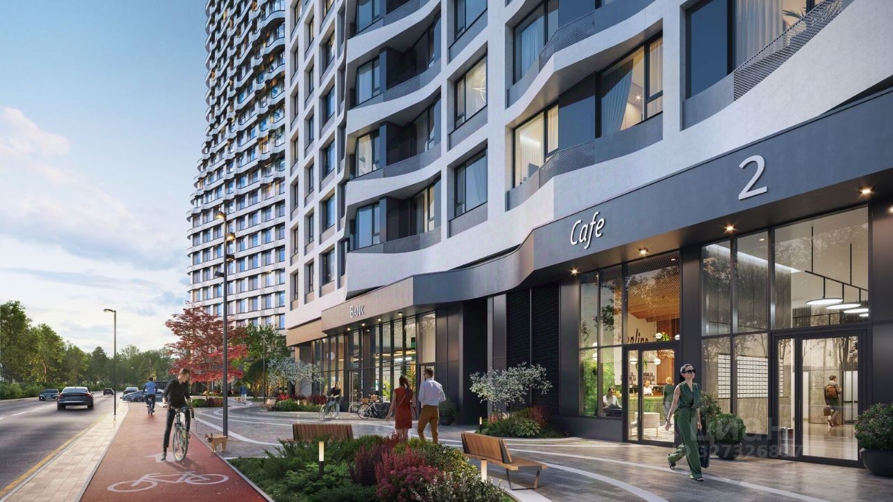 Особенности квартала: • Свой парк ''Зеленая Река'' - 10 га зелени и развлечений на любой вкус! • Уникальная для Москвы архитектура - Проект создан архитектурной мастерской ATRIUM по дизайн-коду британских бюро LDA Design и UHA London. • Богатая инфраструктура с детскими садами и лицеем им. Баумана, кафе и ресторанами, супермаркетами и аптеками, зоной для фитнеса, бассейном и мед. центром. • Квартиры с панорамными окнами, террасами, ванными с окнами и каминами редких форматов. • Закрытые безопасные зелёные дворы-парки без машин!