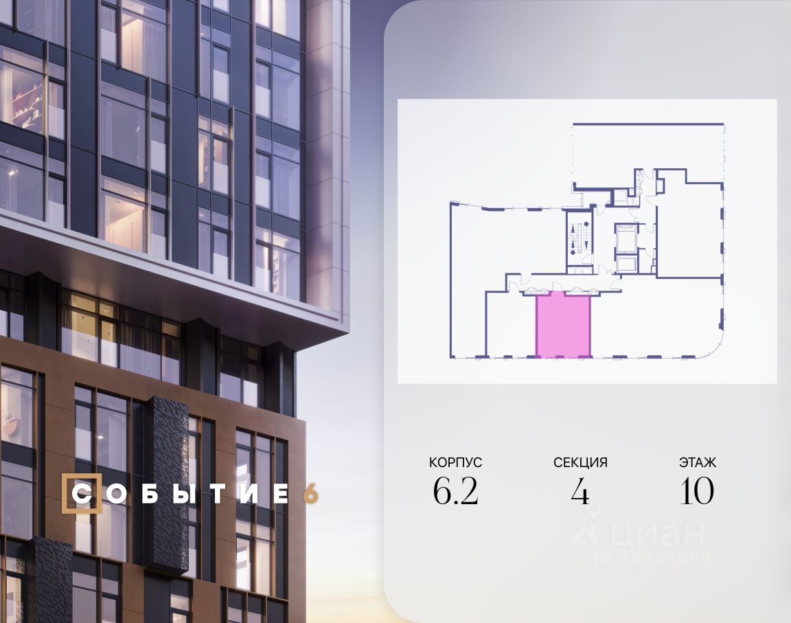 Продаётся квартира-студия от застройщика: общая площадь 32.40 м², жилая 20.80 м², кухня 5.00 м², 10-й этаж, жилой квартал ''Событие-6'', корпус 2 (секция 4) Срок сдачи: 1 квартал 2029 года.