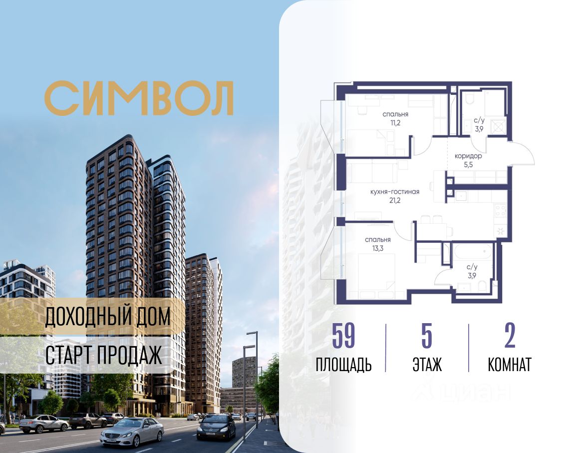 Квартал бизнес-класса СИМВОЛ - это городское пространство нового поколения в историческом районе Лефортово, на границе ЦАО, в 2 км от Садового кольца. Бионическая архитектура СИМВОЛА превратила Лефортово в суперсовременное и модное пространство. Из окон, с балконов и террас просторных квартир СИМВОЛА открываются отличные виды на город и новый парк ''Зеленая река'', ''протекающий'' через все кварталы комплекса на 2 км. В квартале уже есть все, что нужно для комфортной жизни: кафе и рестораны, супермаркеты и магазины, медицинские и физкультурно-оздоровительные центры, салоны красоты и барбершопы, аптеки и оптики, химчистки, пункты доставки и другие сервисы - всего более 90 действующих объектов внутриквартальной инфраструктуры. Для юных жителей СИМВОЛА открыты детский сад и инженерный лицей при МГТУ им. Баумана.