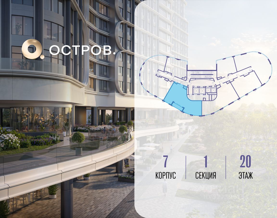 Купите квартиру в доме у прибрежного парка, в квартале ОСТРОВ.7. Это семь корпусов премиум- и бизнес-класса в одном из лучших мест ОСТРОВА - между бульваром и парком, поблизости от реки. Стильные корпуса имеют узнаваемый вид благодаря бионической пластике фасадов, приподнятых над землей. Для жителей предусмотрены детский клуб, фитнес-рум, коворкинг, переговорные, лаунжи. На крышах устроены видовые общественные пространства с зонами для отдыха и спорта. Двор расположен на двух уровнях: нижний ландшафтный парк и верхняя городская терраса.
