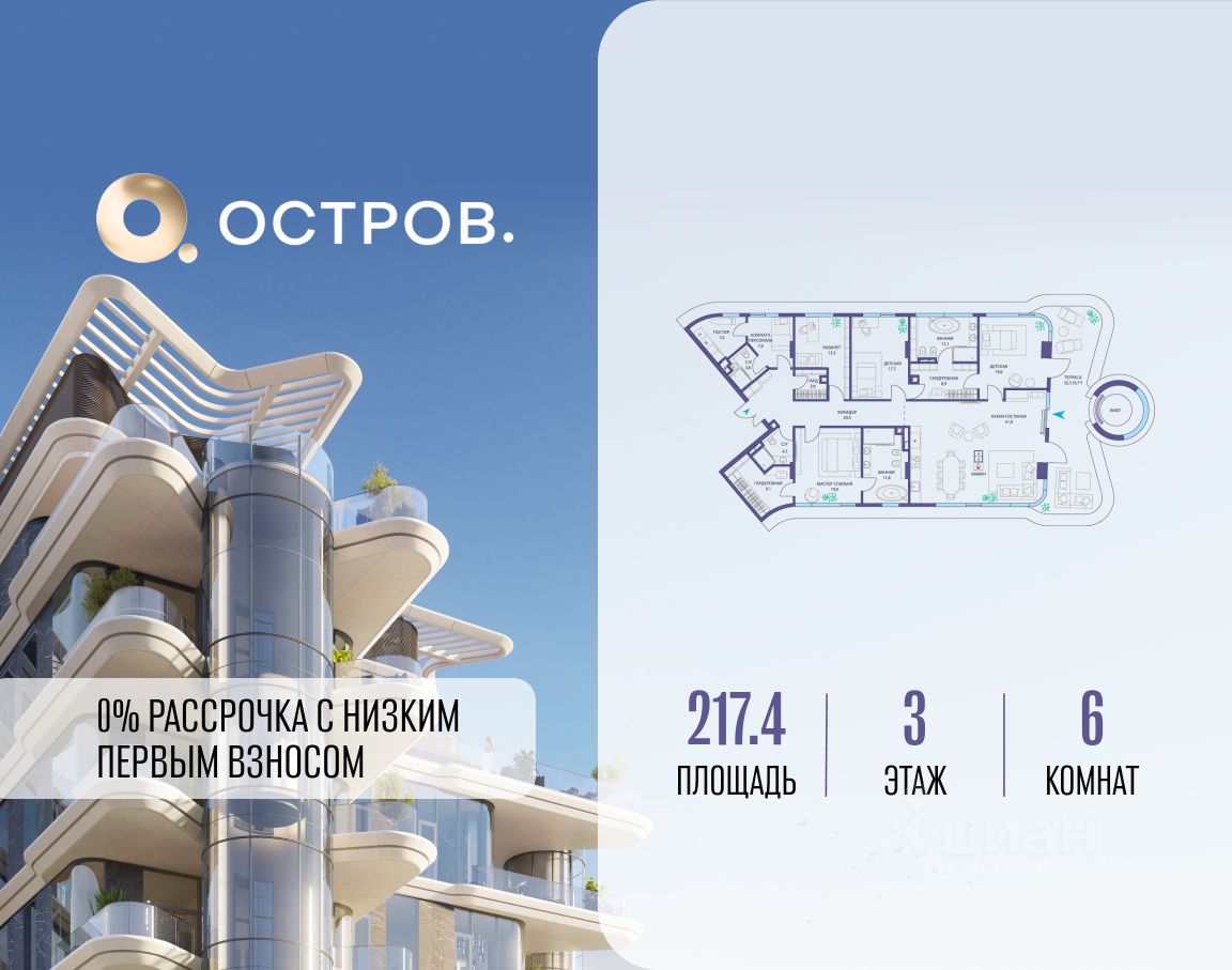 ОСТРОВ от Донстрой - жилой комплекс на западе Москвы, в Мневниковской пойме. Уникальное преимущество комплекса - в том, что он обособлен от города рекой и природным парком (650 га). Благодаря природному окружению эта территория имеет лучший экологический рейтинг в столице. Кварталы ОСТРОВА объединены ландшафтным дизайном в единое пространство - с набережными и Центральным бульваром. На ОСТРОВЕ любые объекты, необходимые для полноценной жизни и отдыха, находятся на расстоянии 15-минутной прогулки. Торговый центр и супермаркеты, кафе и рестораны, фитнес, салоны красоты, школы и детские сады. А также крупнейший в Москве спортивный кластер.