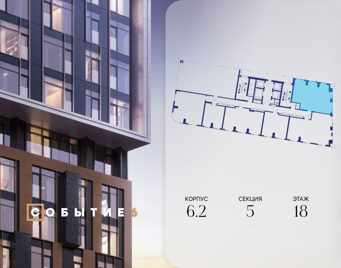Продаётся 3-комнатная квартира от застройщика: общая площадь 77.20 м², жилая 41.70 м², кухня 18.10 м², 18-й этаж, жилой квартал ''Событие-6'', корпус 2 (секция 5) Срок сдачи: 1 квартал 2029 года.