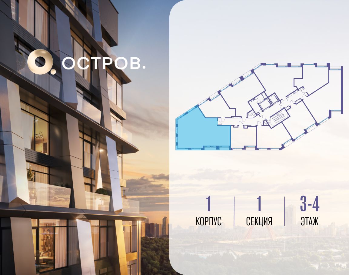 ОСТРОВ.12.1 - часть жилого комплекса на западе Москвы, в 15 минутах езды от центра. Это настоящий заповедник посреди большого города, в окружении реки и 650 га заповедников. Здесь все необходимое находится по соседству: от детского сада до супермаркета, от фитнес-зала до серфинг-центра. На территории созданы все условия для отдыха и общения: клубная инфраструктура в домах и дворы-парки, набережные и променады, маршруты для спортсменов, детей и возрастных жителей. В нескольких минутах ходьбы расположена станция метро ''Мнёвники'' БКЛ. На автомобиле - 10 минут до Москва-Сити и 15 минут до Садового кольца.