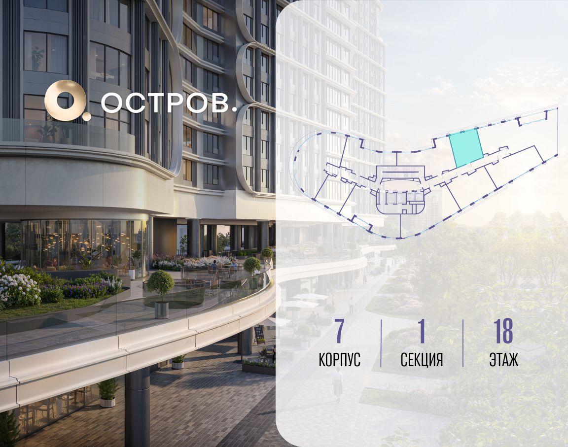 Купите квартиру в доме у прибрежного парка, в квартале ОСТРОВ.7. Это семь корпусов премиум- и бизнес-класса в одном из лучших мест ОСТРОВА - между бульваром и парком, поблизости от реки. Стильные корпуса имеют узнаваемый вид благодаря бионической пластике фасадов, приподнятых над землей. Для жителей предусмотрены детский клуб, фитнес-рум, коворкинг, переговорные, лаунжи. На крышах устроены видовые общественные пространства с зонами для отдыха и спорта. Двор расположен на двух уровнях: нижний ландшафтный парк и верхняя городская терраса.
